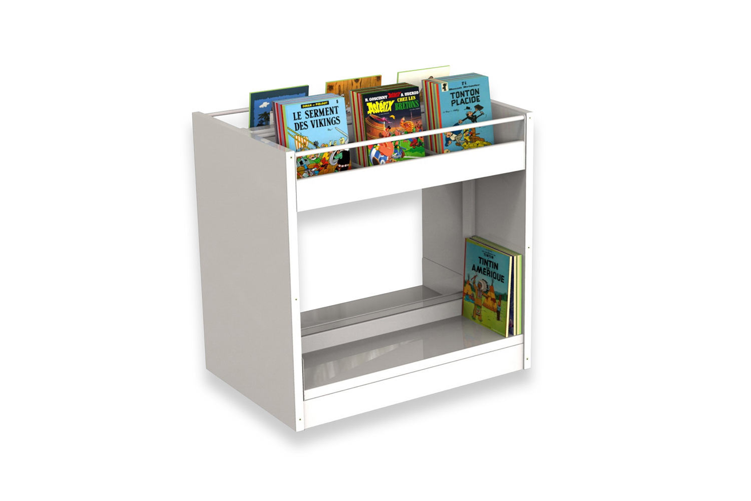 Flexibiliteten hos 60/30 Classic stålhylla gör att du kan skapa bilderbokstråg som passar ihop med resten av bibliotekets hyllinredning. Dessa låga hyllsektioner kan användas för exponering av CD/DVD eller serie- och bilderböcker. Komplettera med yttergavlar i olika material och färger som passar din befintliga inredning. Modulerna finns som fristående tråg eller start- och fortsättningssektioner.