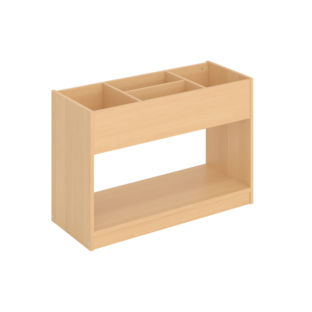 Praktisk avlastningshylla med sockel för extra förvaring.