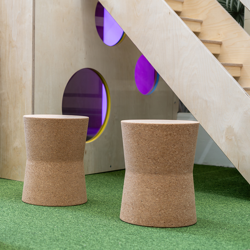 Kork är lätt att rengöra, ljudabsorberande och brandhärdigt, vilket gör den perfekt för allmänna utrymmen och särskilt barnens miljö.