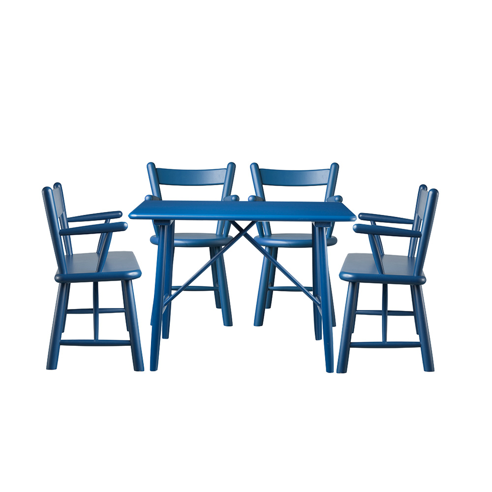 Möblerna är tillverkade av lackerad bok och kräver minimalt underhåll. De rengörs enkelt genom att torkas av med en fuktig trasa.