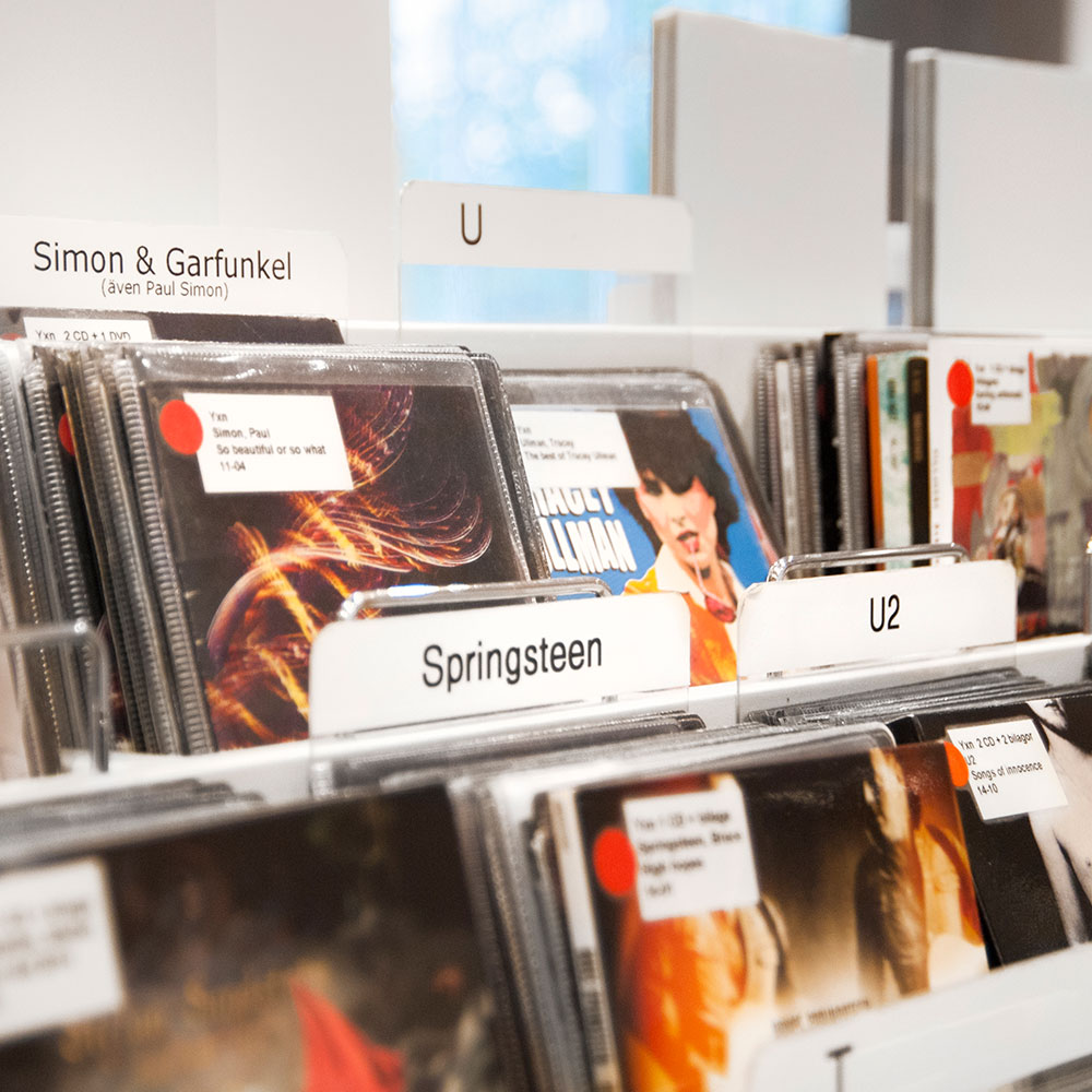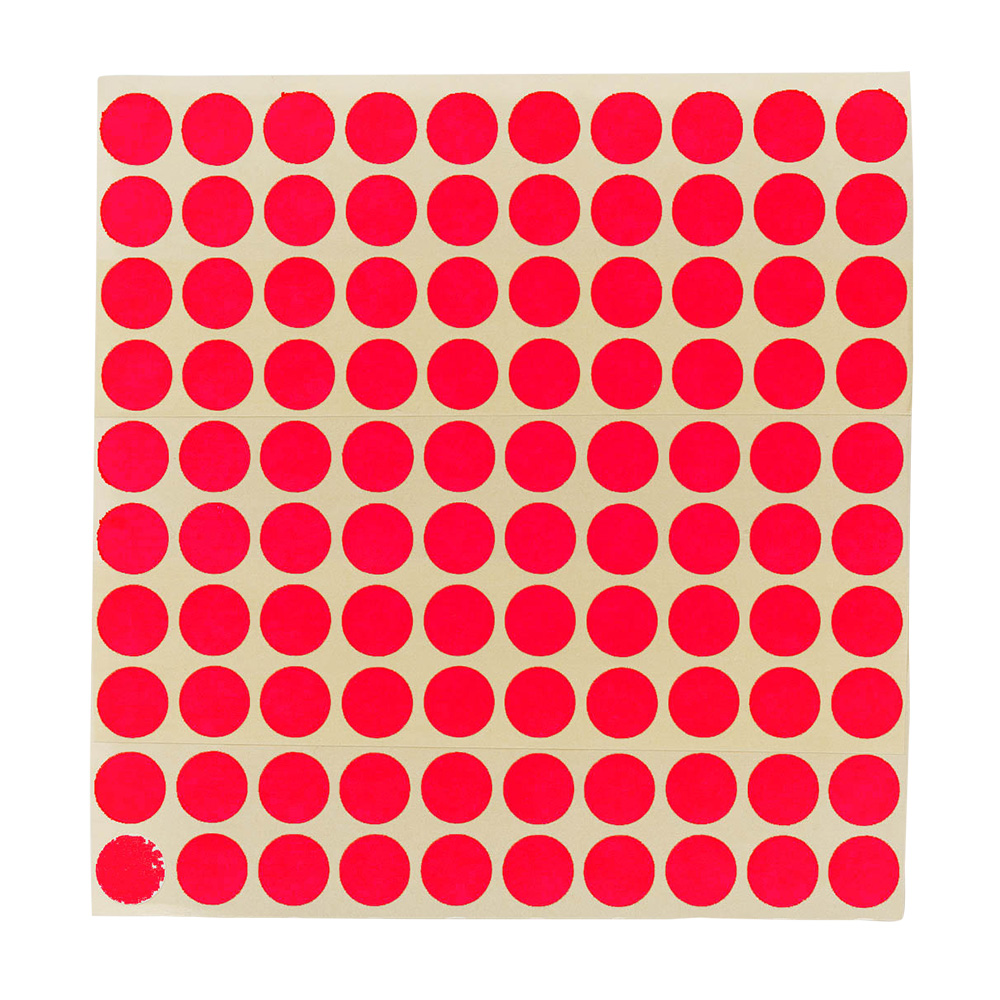 Permanenta självhäftande, utstansade färgmarkeringar i ark för att märka bokryggar, CD/DVD-emballage m.m.