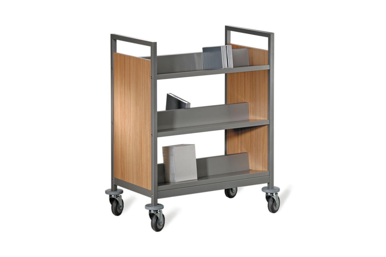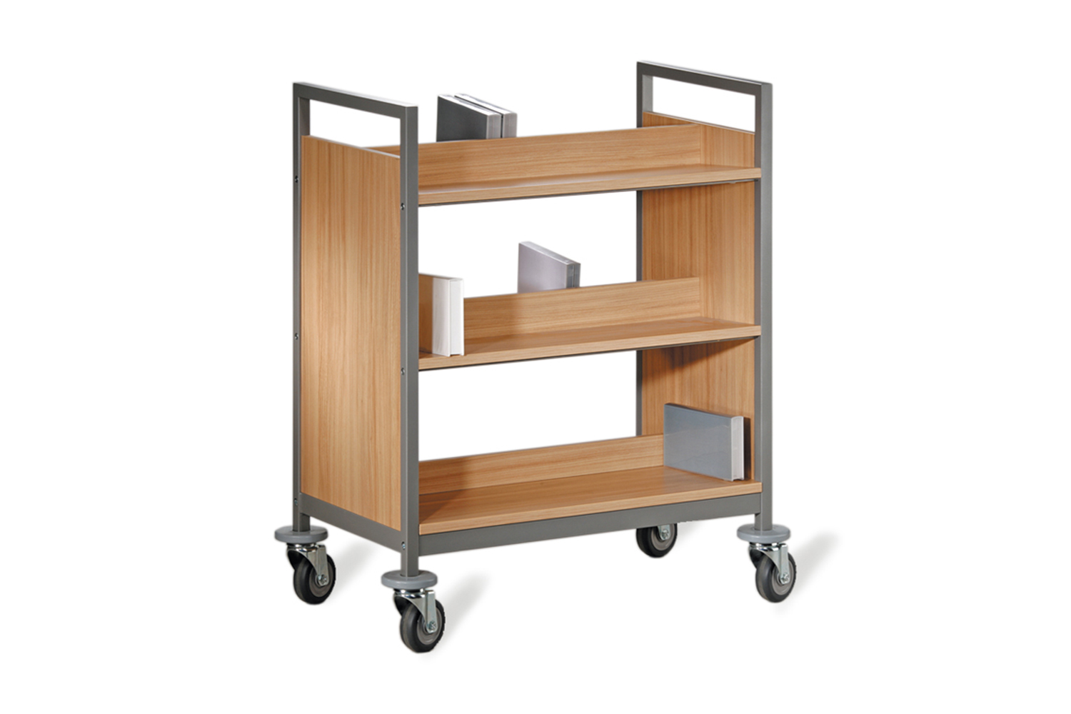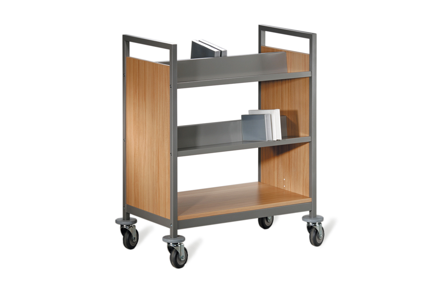 Den robusta formen och den mångsidiga designen gör denna bokvagn anpassningsbar till bibliotekets eller institutionens specifika krav. De många funktionerna såsom fasta eller flyttbara avdelare; sluttande eller raka hyllplan samt trä- eller metallhyllor kulminerar i en multi-funktionell bokvagn som inte bara svarar upp mot vardagens krav i ett välfungerande bibliotek utan också de speciella behoven.