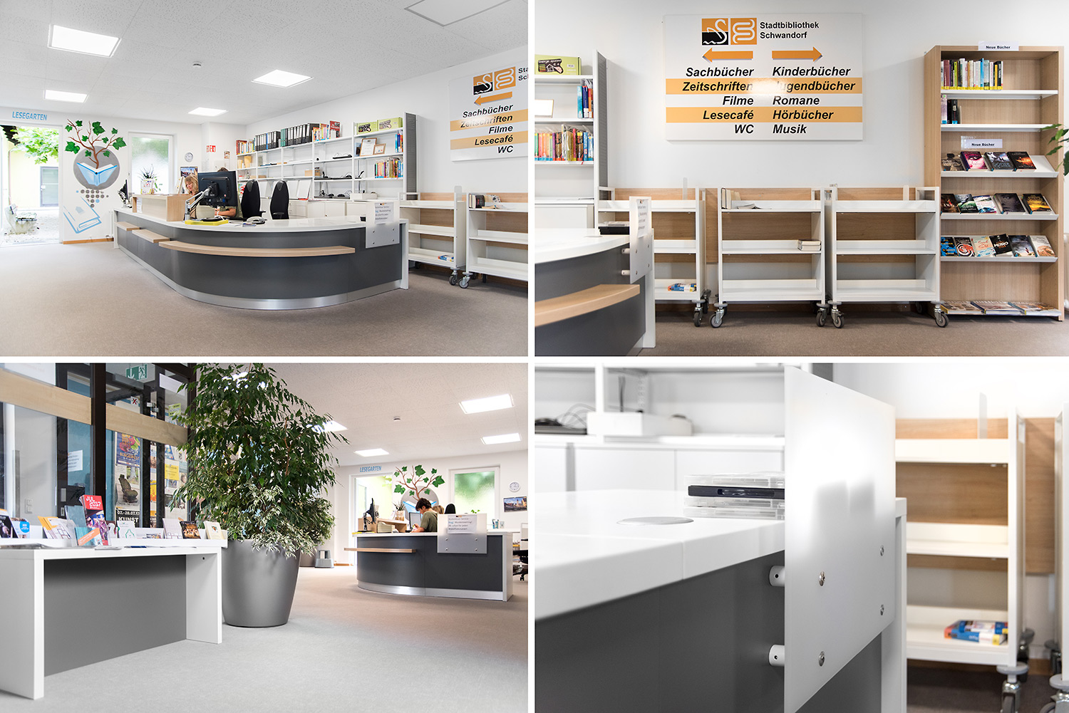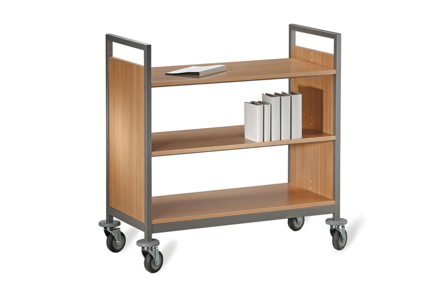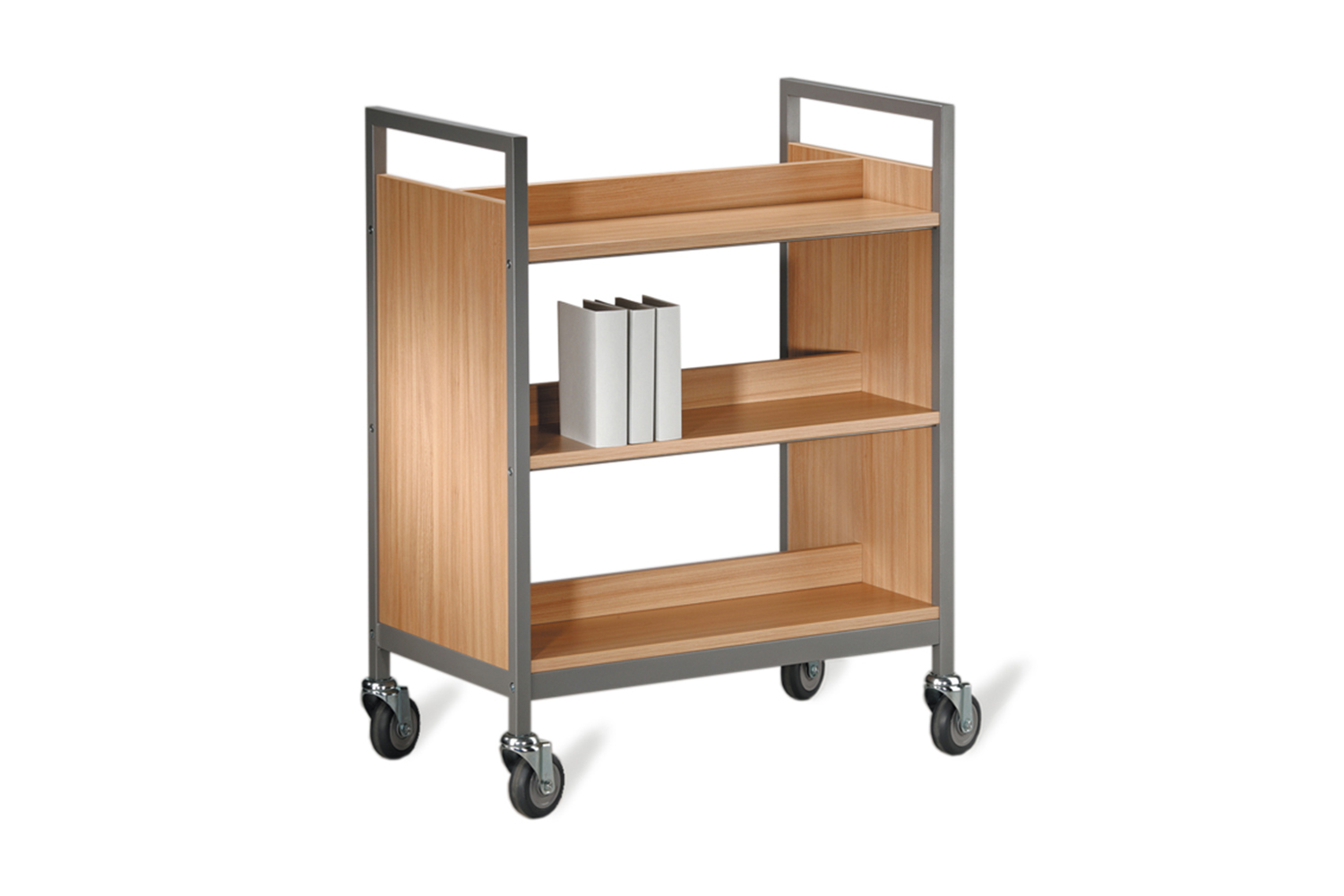 Den robusta formen och den mångsidiga designen gör denna bokvagn anpassningsbar till bibliotekets eller institutionens specifika krav. De många funktionerna såsom fasta eller flyttbara avdelare; sluttande eller raka hyllplan samt trä- eller metallhyllor kulminerar i en multi-funktionell bokvagn som inte bara svarar upp mot vardagens krav i ett välfungerande bibliotek utan också de speciella behoven.