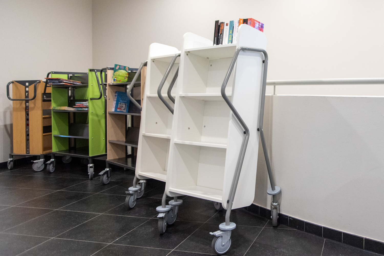 Bokvagnens lutning säkerställer effektiv förvaring och ger god översikt över de böcker du vill hantera.