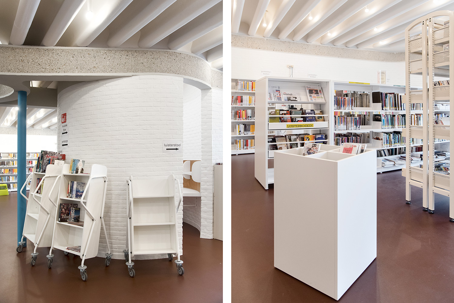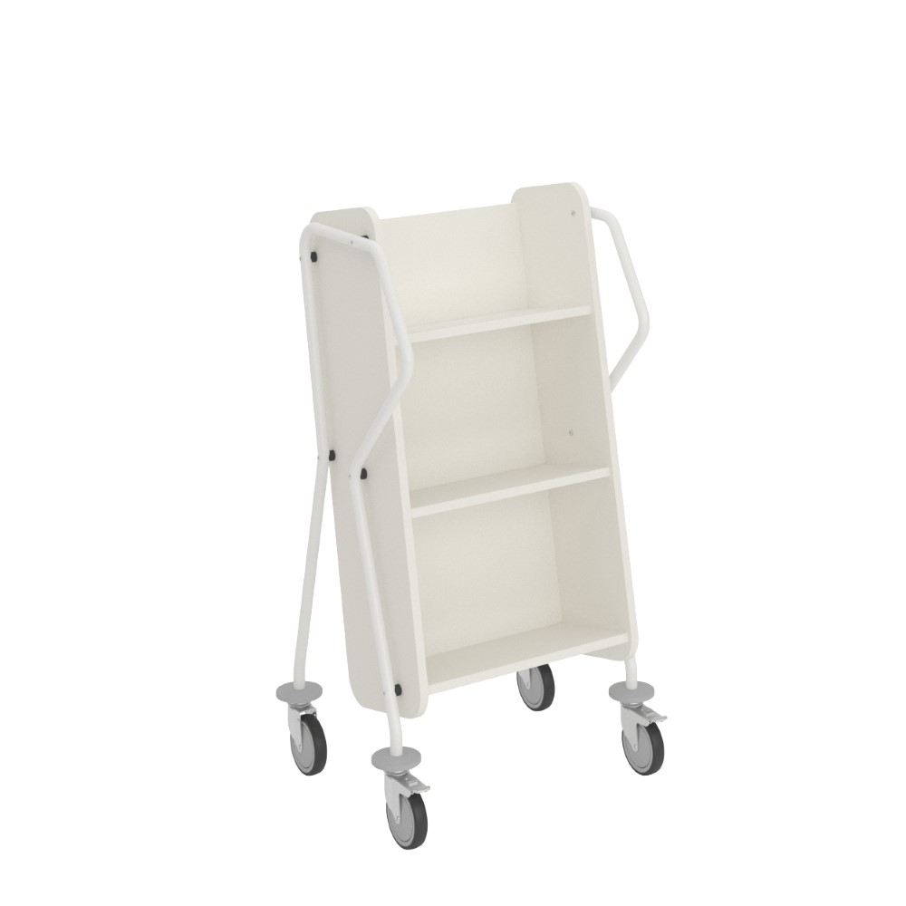 Ergonomisk, användarvänlig, enkelsidig bokvagn med 3 hyllplan med generösa hyllavstånd. Idealisk även för böcker i lite större format.