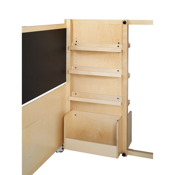 Hyllplan och tråg kommer i två olika bredder för att passa bakre väggelementets in- och utsida.