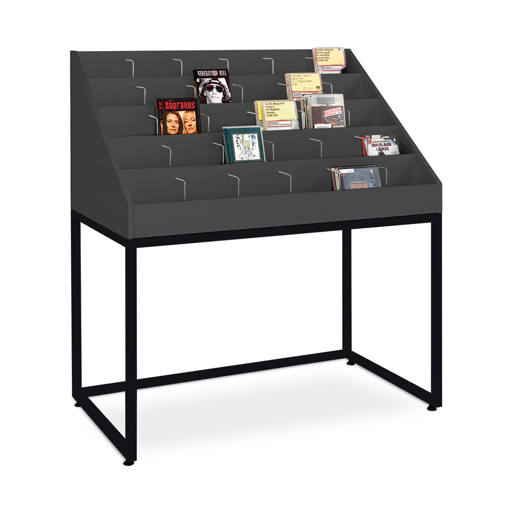 5 våningar med vardera 6 rymliga fackvilket till CD och DVD skivor ger en bra överblick och god tillgänglighet.