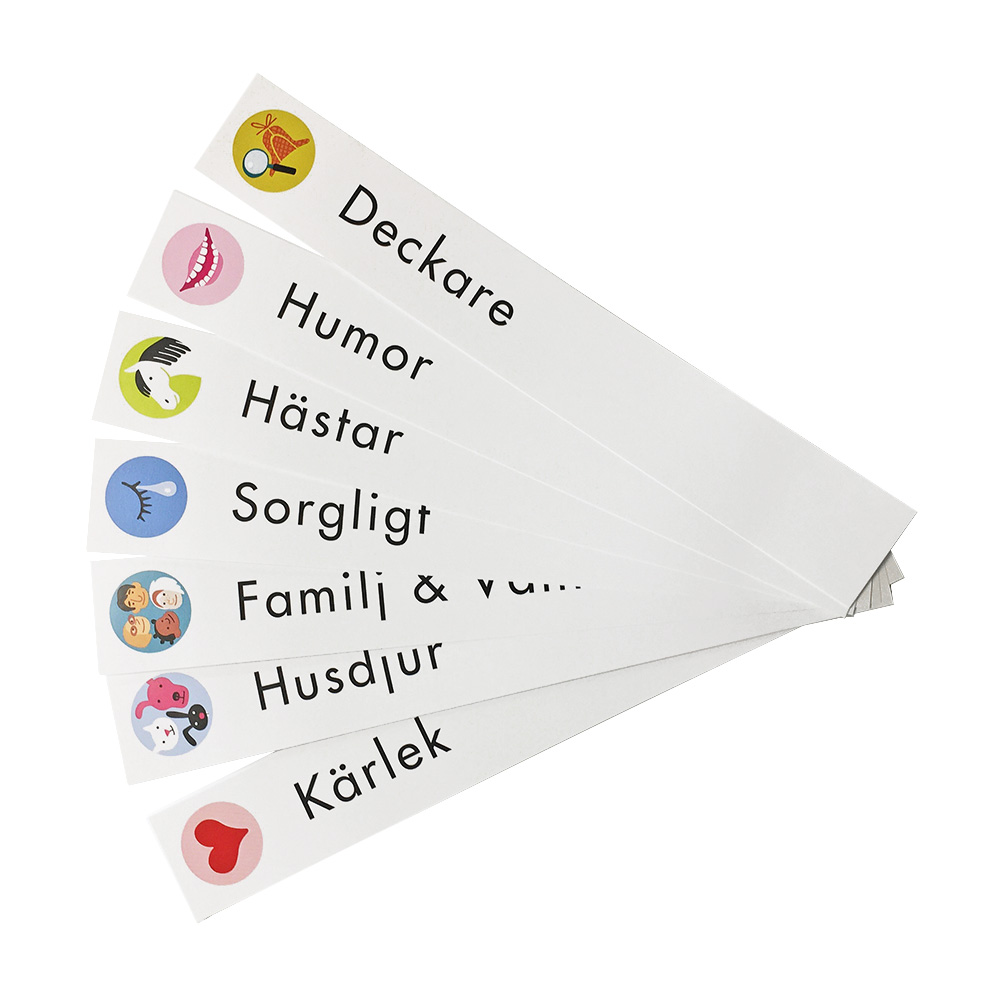 Knubbetikettserie med 18 olika symboler. I serien ingår symboler för skönlitterära gener, lämpliga för barn från 6 år. De är utarbetade inom projektet DOFF På barns och ungdomars villkor III och tillsammans med barn.