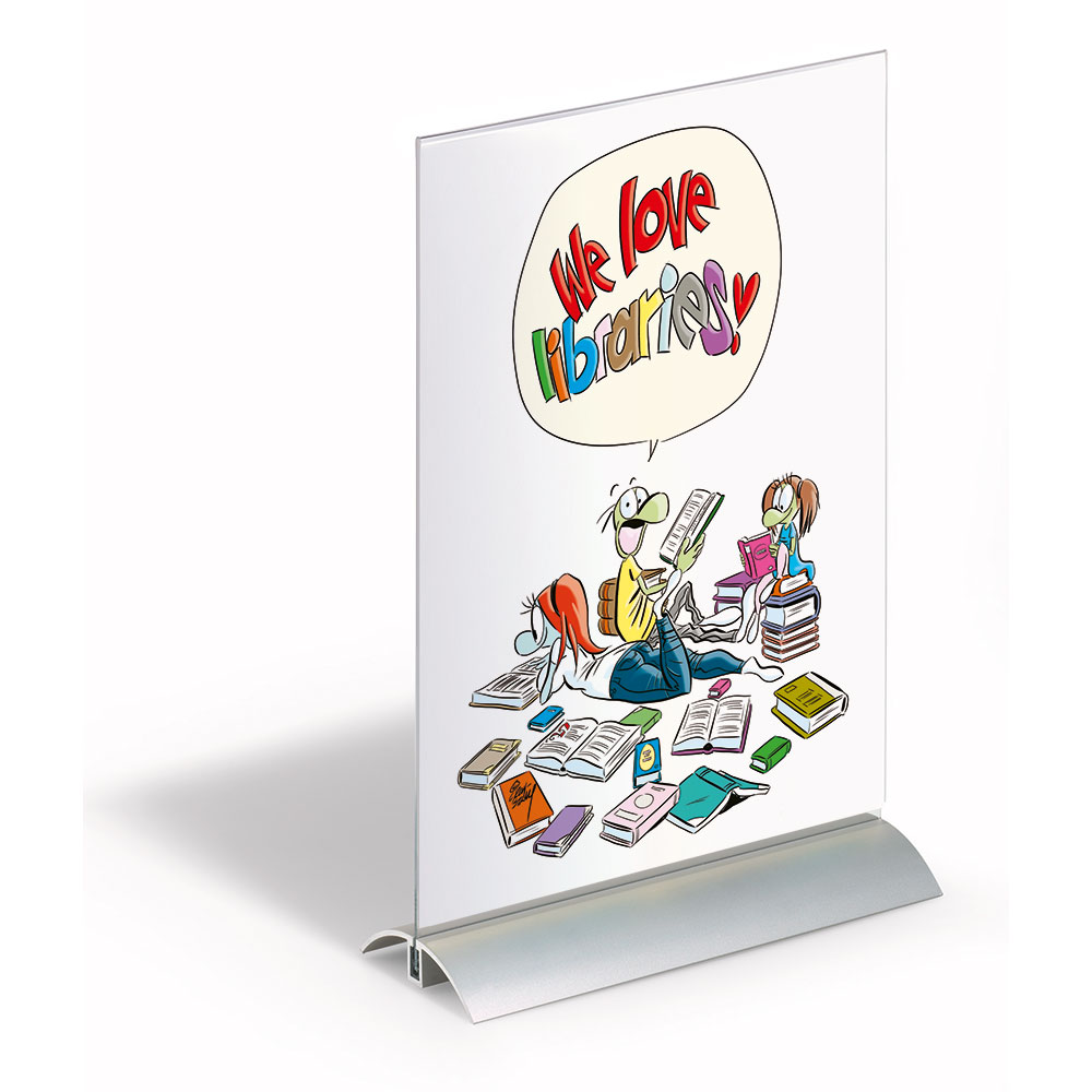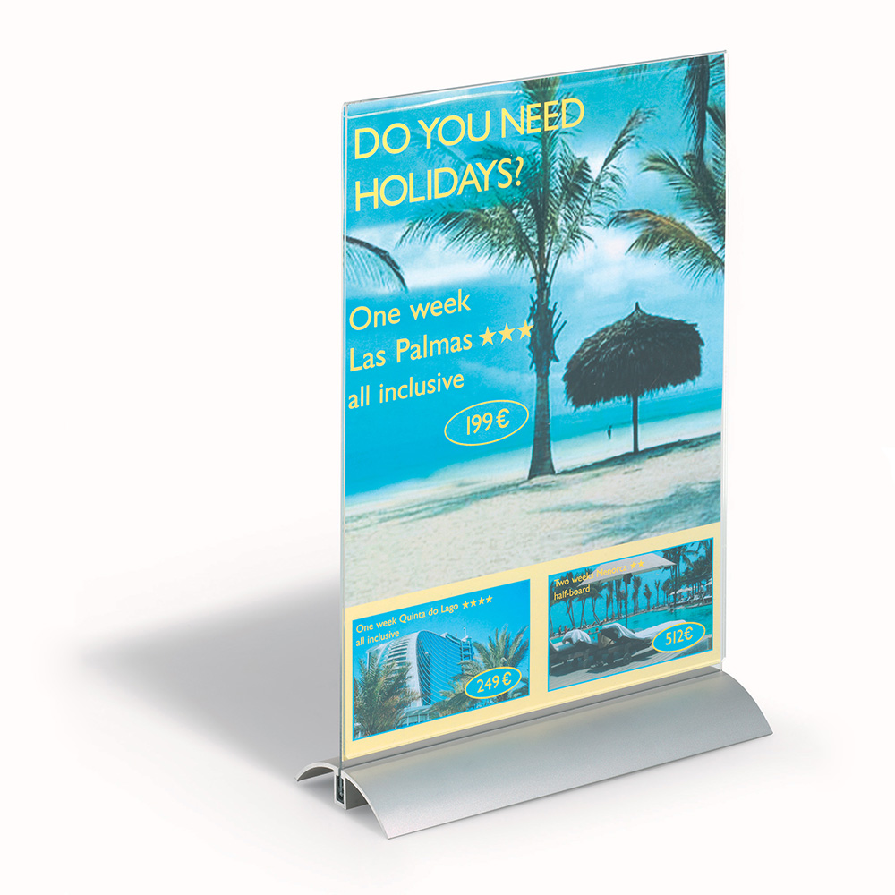 Dubbelsidiga akryl skyltställ på bas