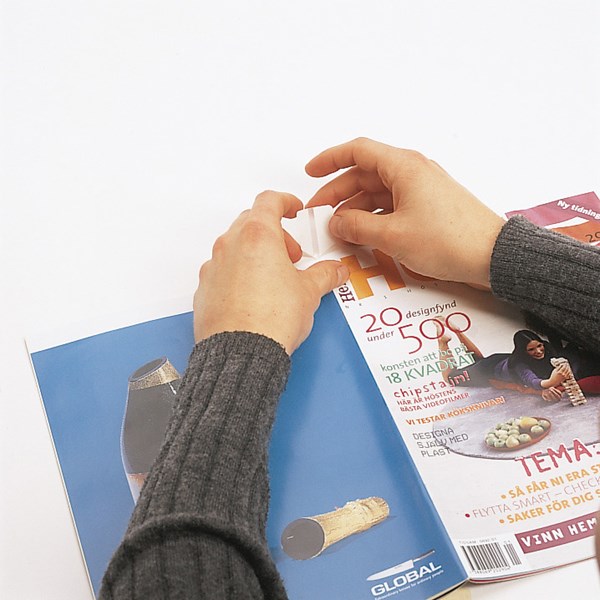 Självhäftande för förstärkning av dagstidningar, tidskrifter och magasin.