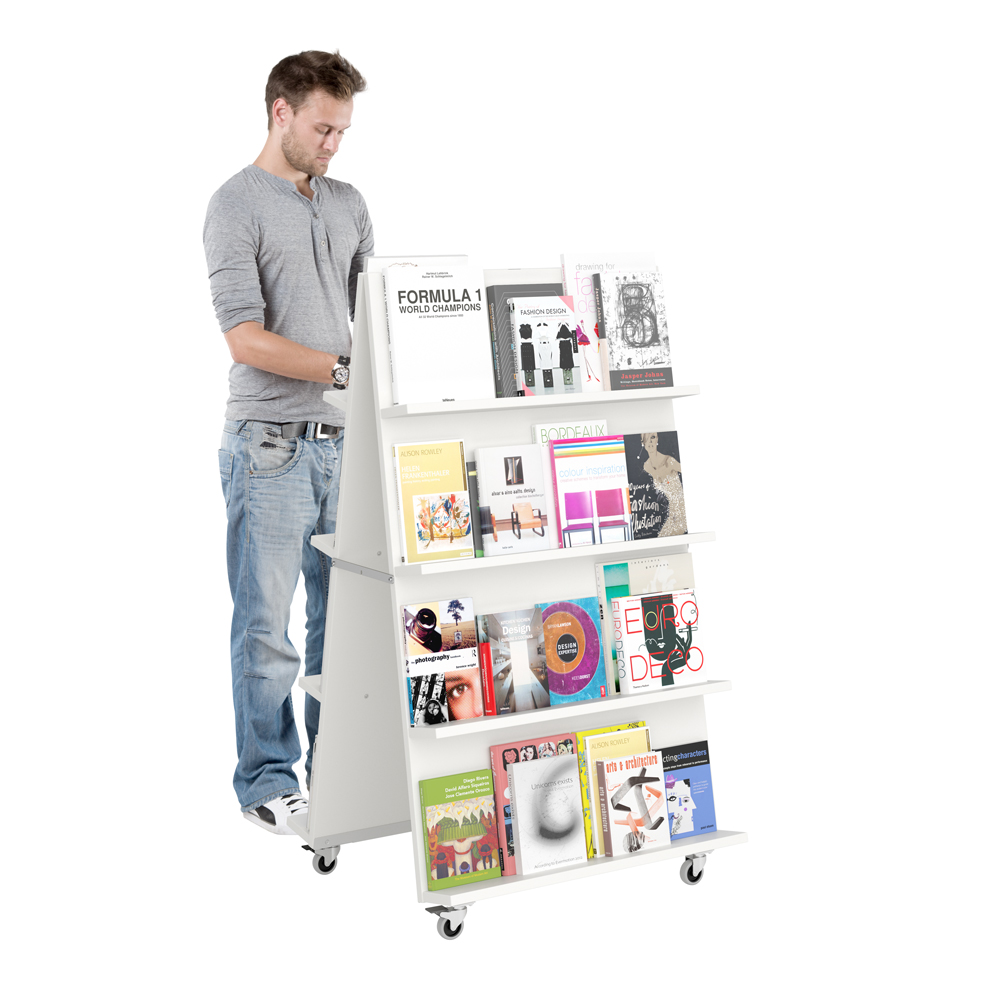 Med vår mobila A-exponering kan du visa böcker på ett iögonfallande sätt även i större, öppna områden eller entréer. Använd dem enskilt eller flera intill varandra för att skapa en tvåsidig exponeringsvägg.