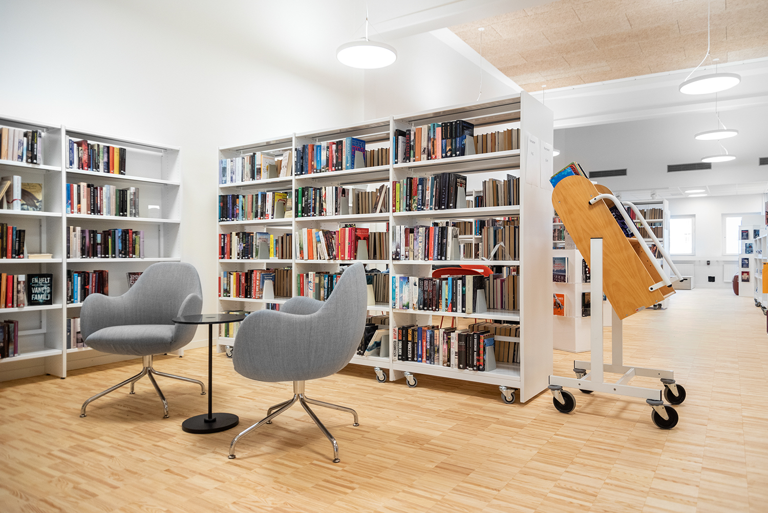 Förhöjd förvaring minskar slitage på rygg och leder. Ett välkommet arbetsredskap vid transport av böcker.