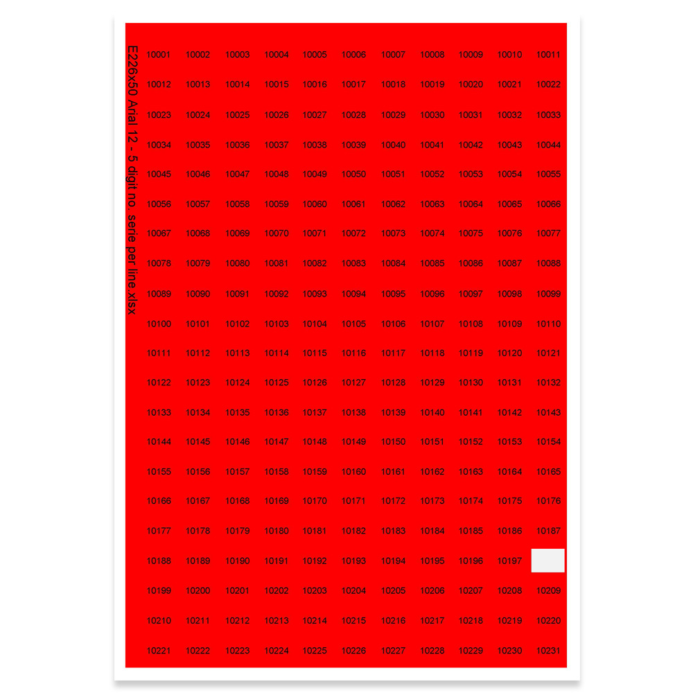 Självhäftande, utstansade etiketter i ark för nummerserier.