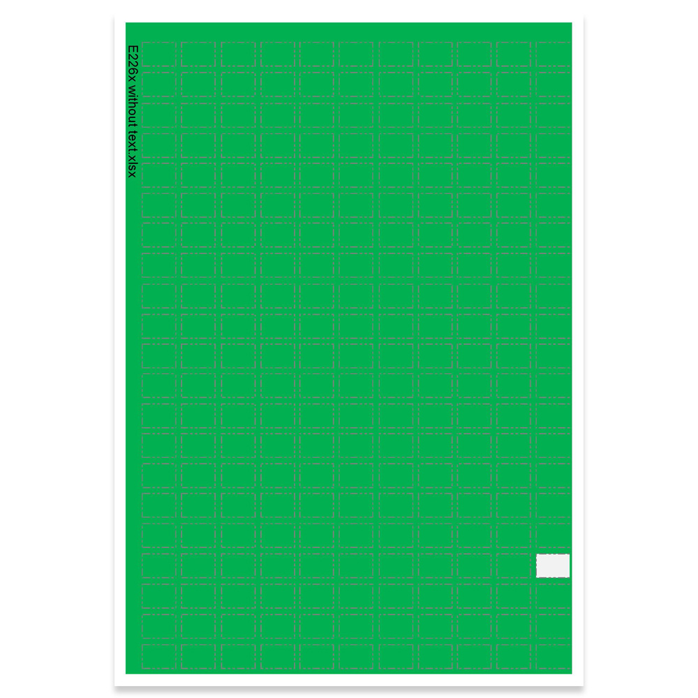 Självhäftande, utstansade etiketter i ark för valfri text, exv. klassifikationssystem.