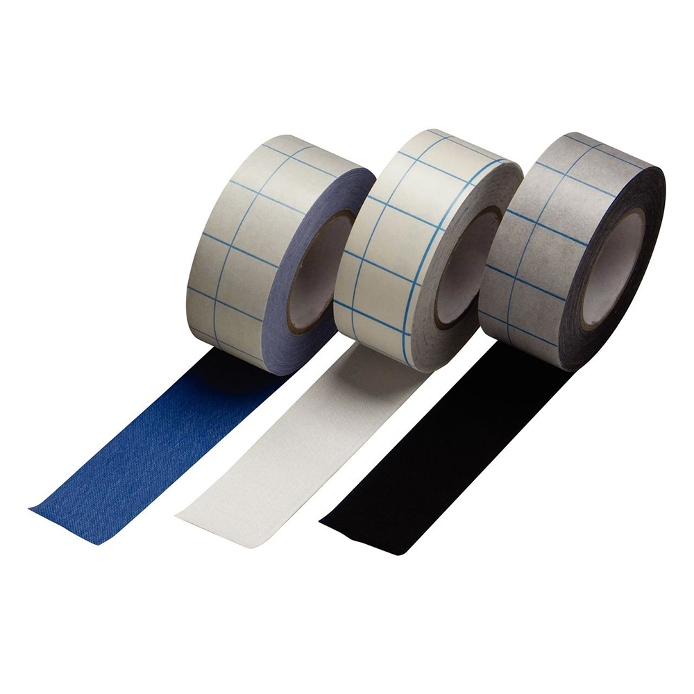 En självhäftande och skrivbar remsa. Syrafri, självhäftande väv i Rayon, finns i olika kulörer och bredder.