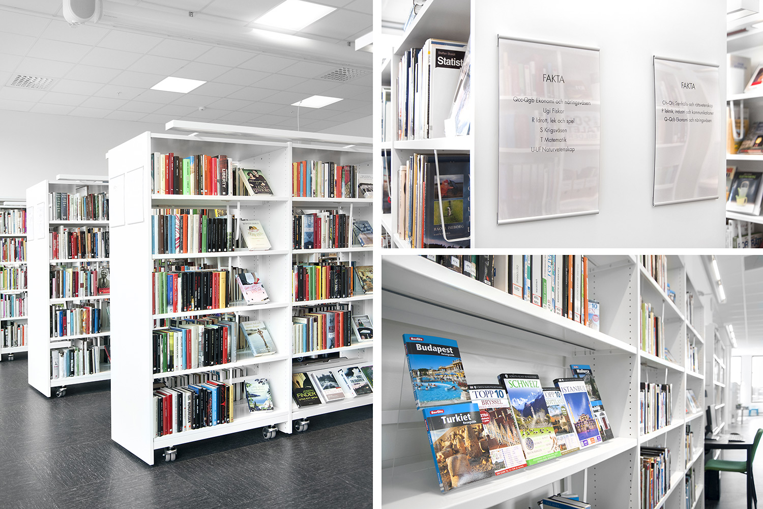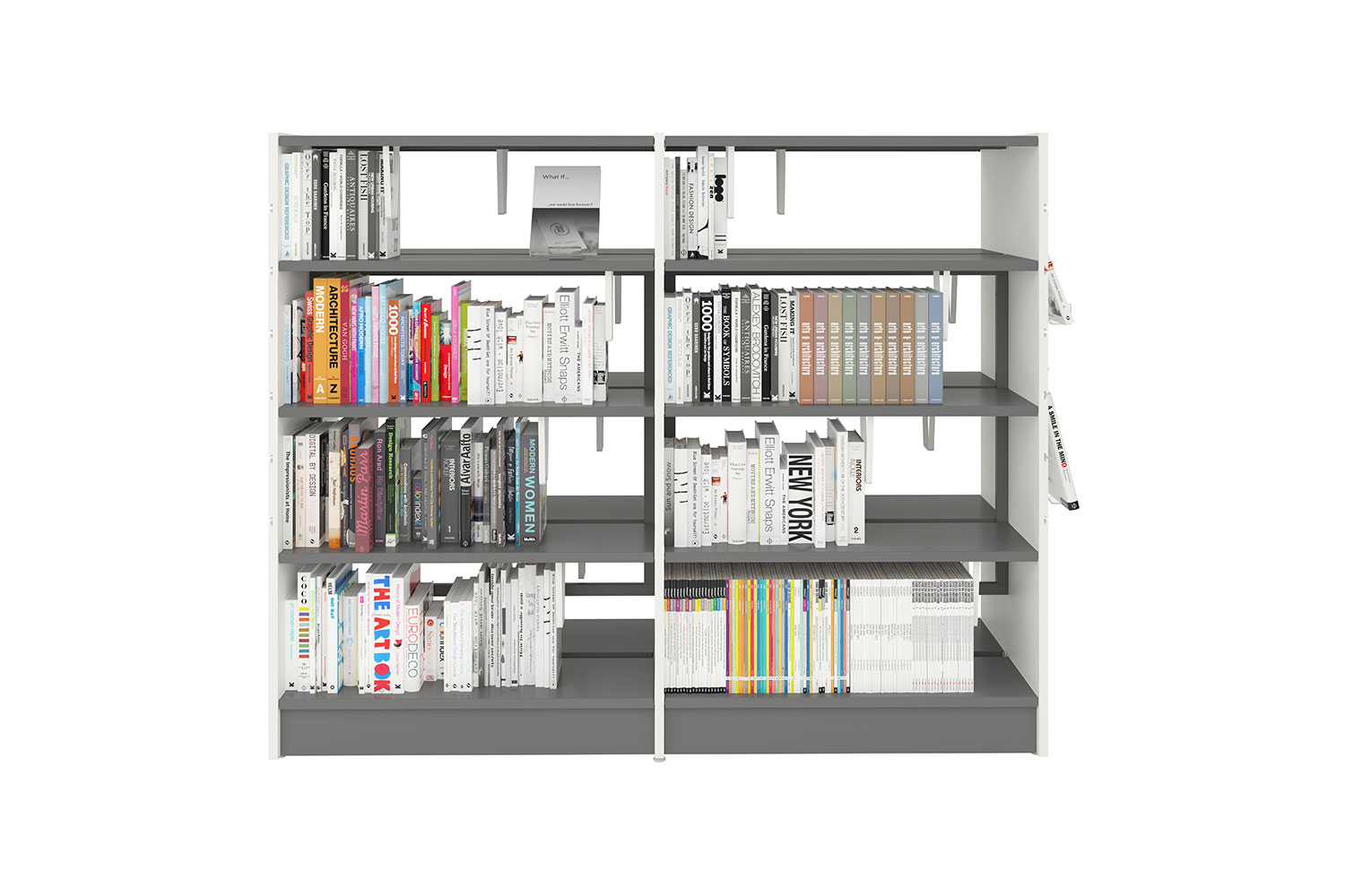 Hyllsektionerna monteras antingen med en öppen stålram eller med hel rygg av trä. Denna lösning, som vi lanserade för över trettio år sedan, gör det enkelt att lägga till eller ta bort enskilda sektioner utan att demontera hela hyllrader.