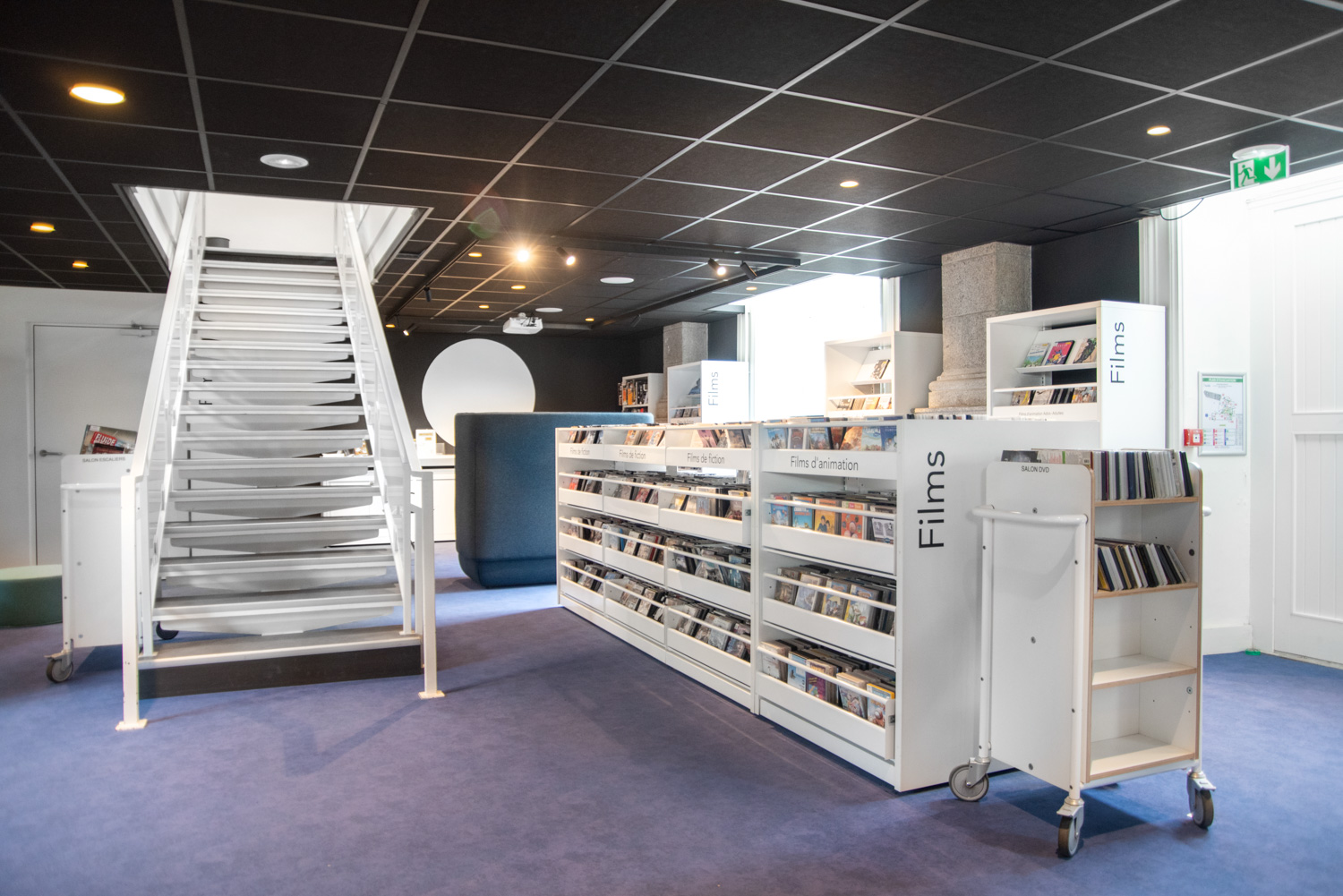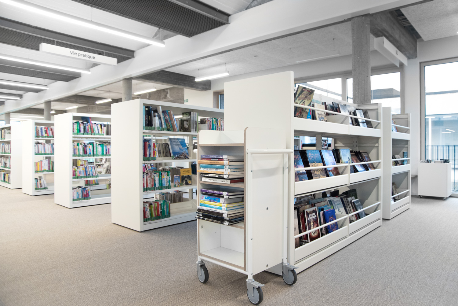 Denna bokvagn kan användas som ett mini-hyllsystem som kan flyttas runt i biblioteket efter var den behövs.