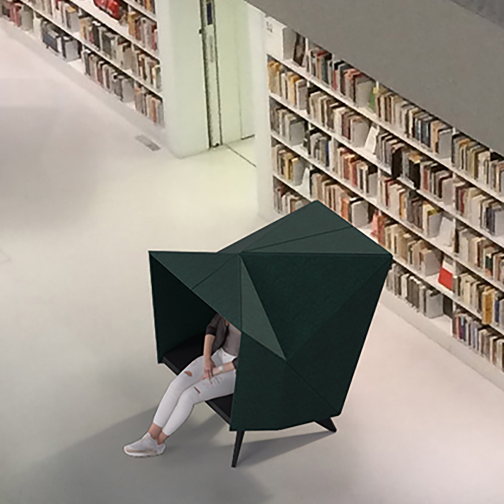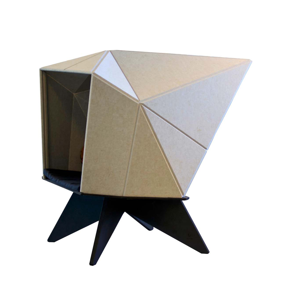 HabiCave är en dansk design skulpterad med inspiration från japansk origami. Enkelhet och omtänksam estetik talar till sinnena, och det akustiska materialet inte bara hjälper till att reducera störande ljud inne i krypinet utan också i rummet.