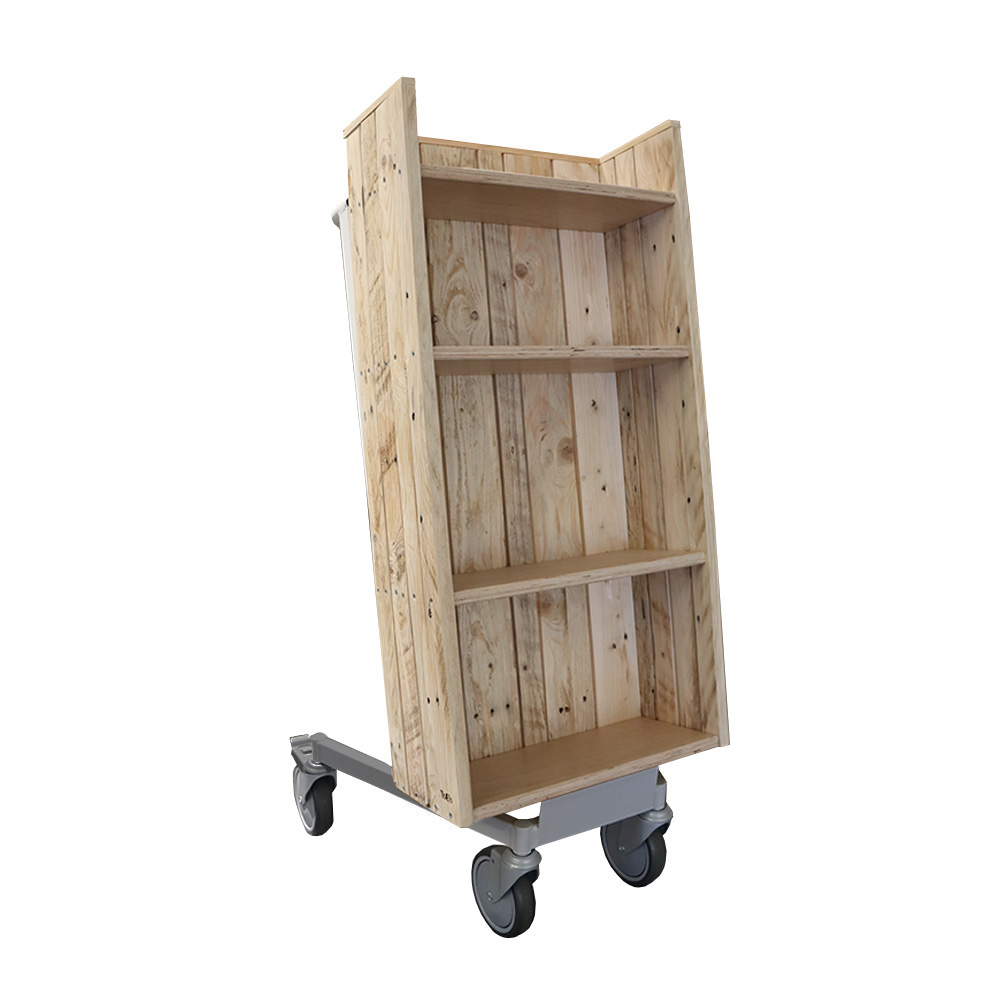 Lättanvänd, enkelsidig bokvagn med fyra fasta hyllplan.