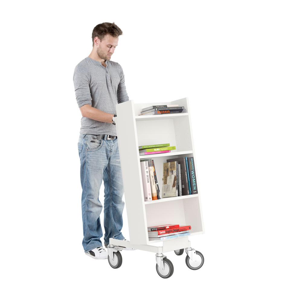 Bokvagnens lutning säkerställer effektiv förvaring och ger god översikt över de böcker du vill hantera.