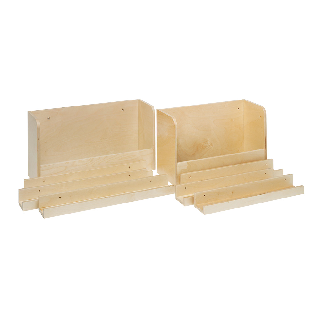 Hyllplan och tråg kommer i två olika bredder för att passa bakre väggelementets in- och utsida.