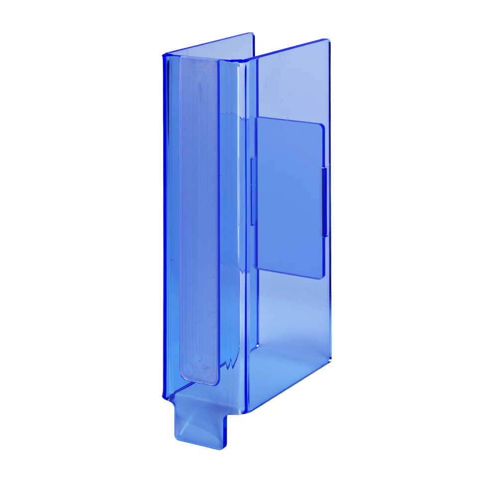 Hyllmarkeringar i glass look eller med fluorescerande effekt. Hög detaljfinish.