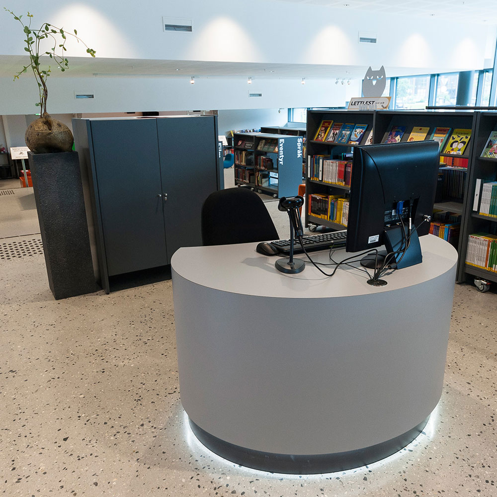 Idealiska informationsdiskar och arbetsstationer för större bibliotek eller som mottagningsdiskar för skolbibliotek.