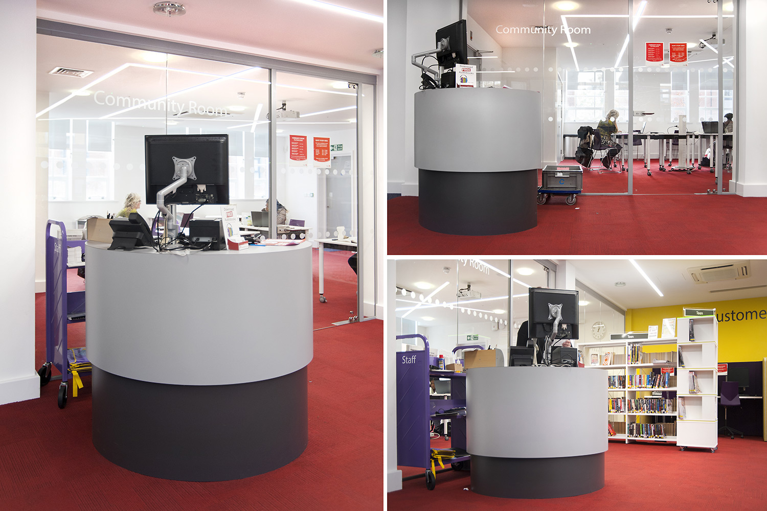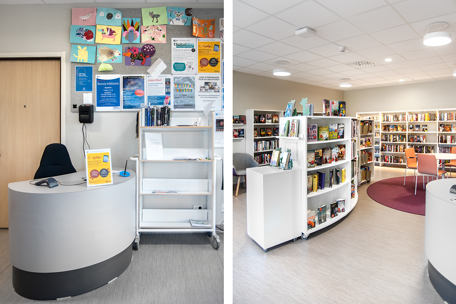 Idealiska informationsdiskar och arbetsstationer för större bibliotek eller som mottagningsdiskar för skolbibliotek.