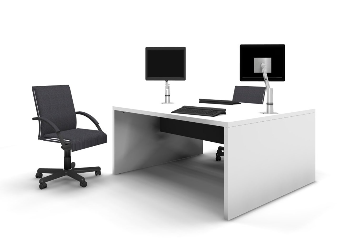 Duo: ett rektangulärt bord med frontpanelen placerad nära mitten, så att bordet kan användas från bägge sidor.