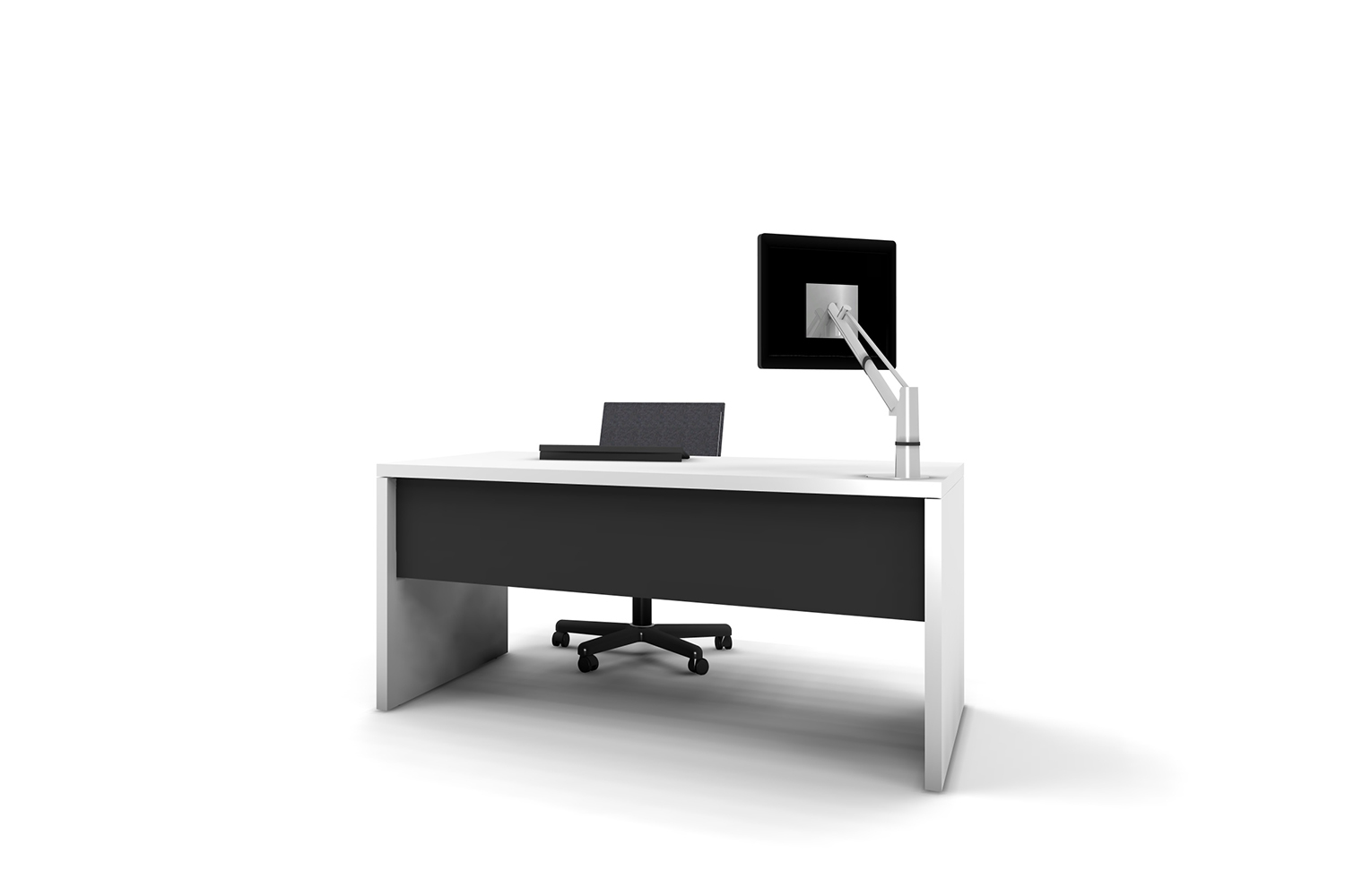 Solo: ett rektangulärt bord med frontpanel placerad 50 mm framför bordets framkant.