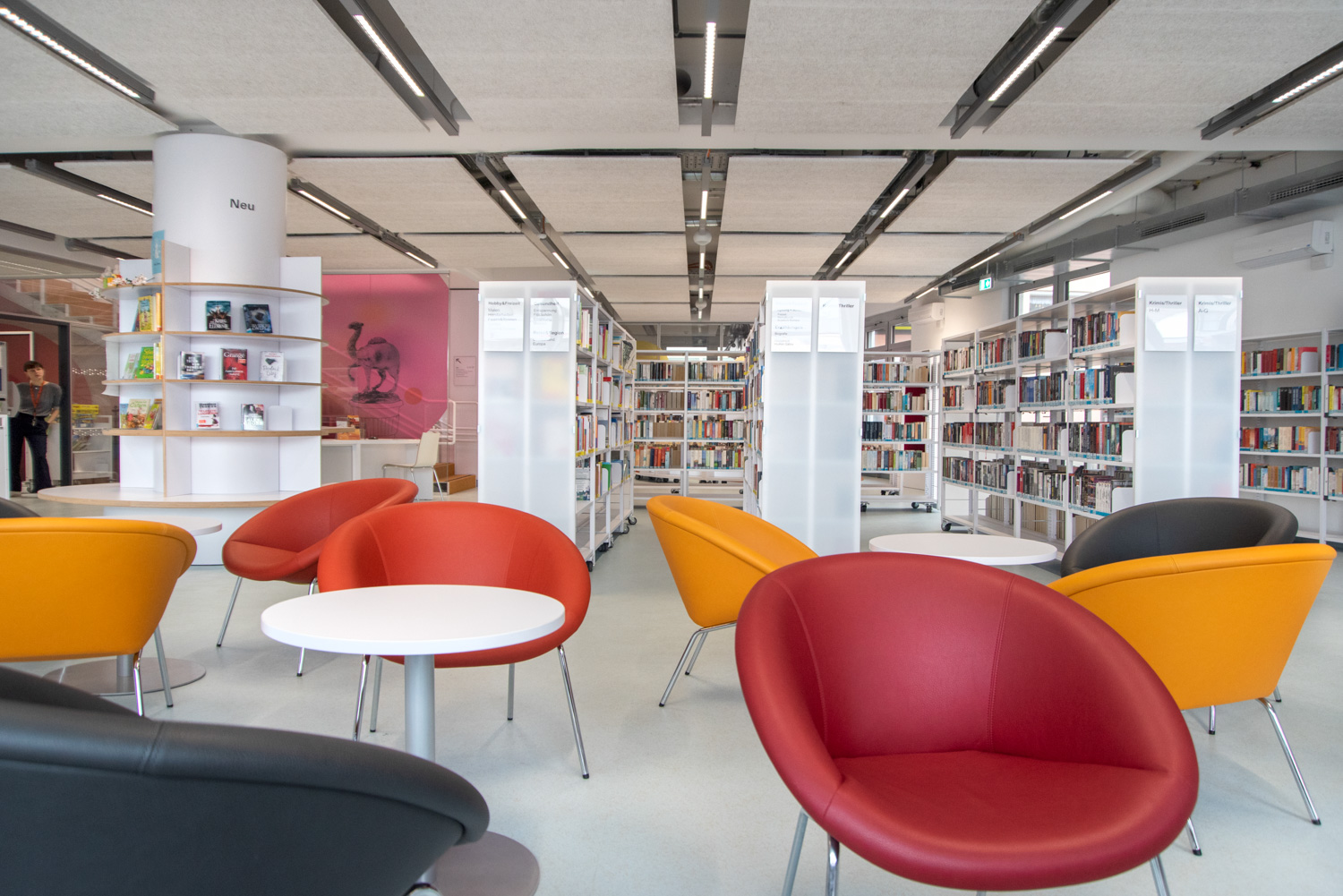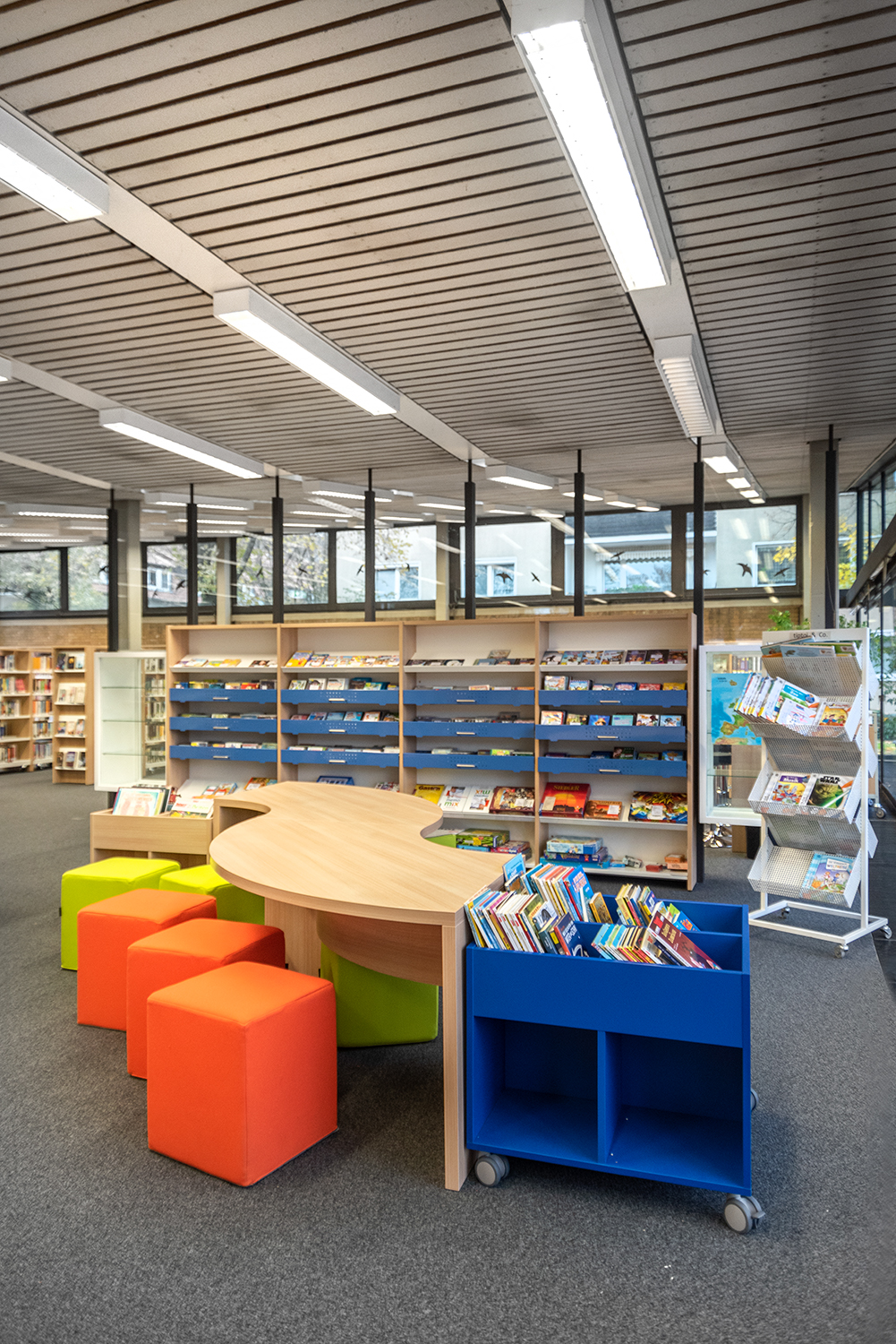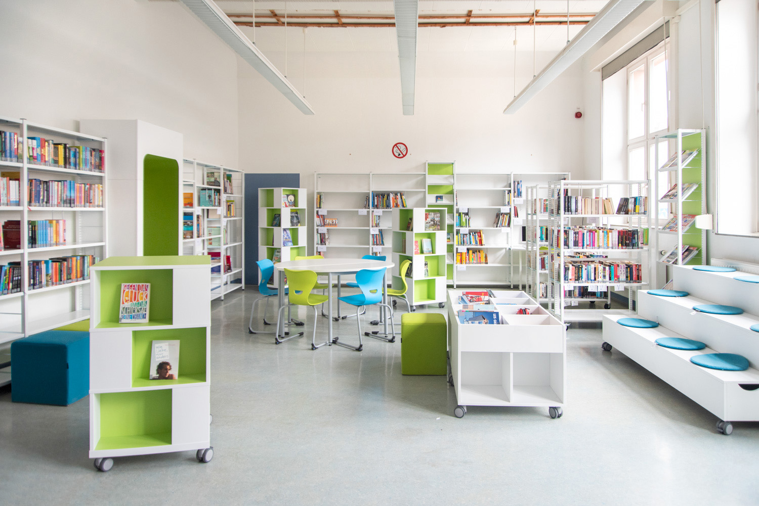 Borden kan användas för att skapa spännande och funktionella arbetsmiljöer i biblioteket, för både sittande och stående.
