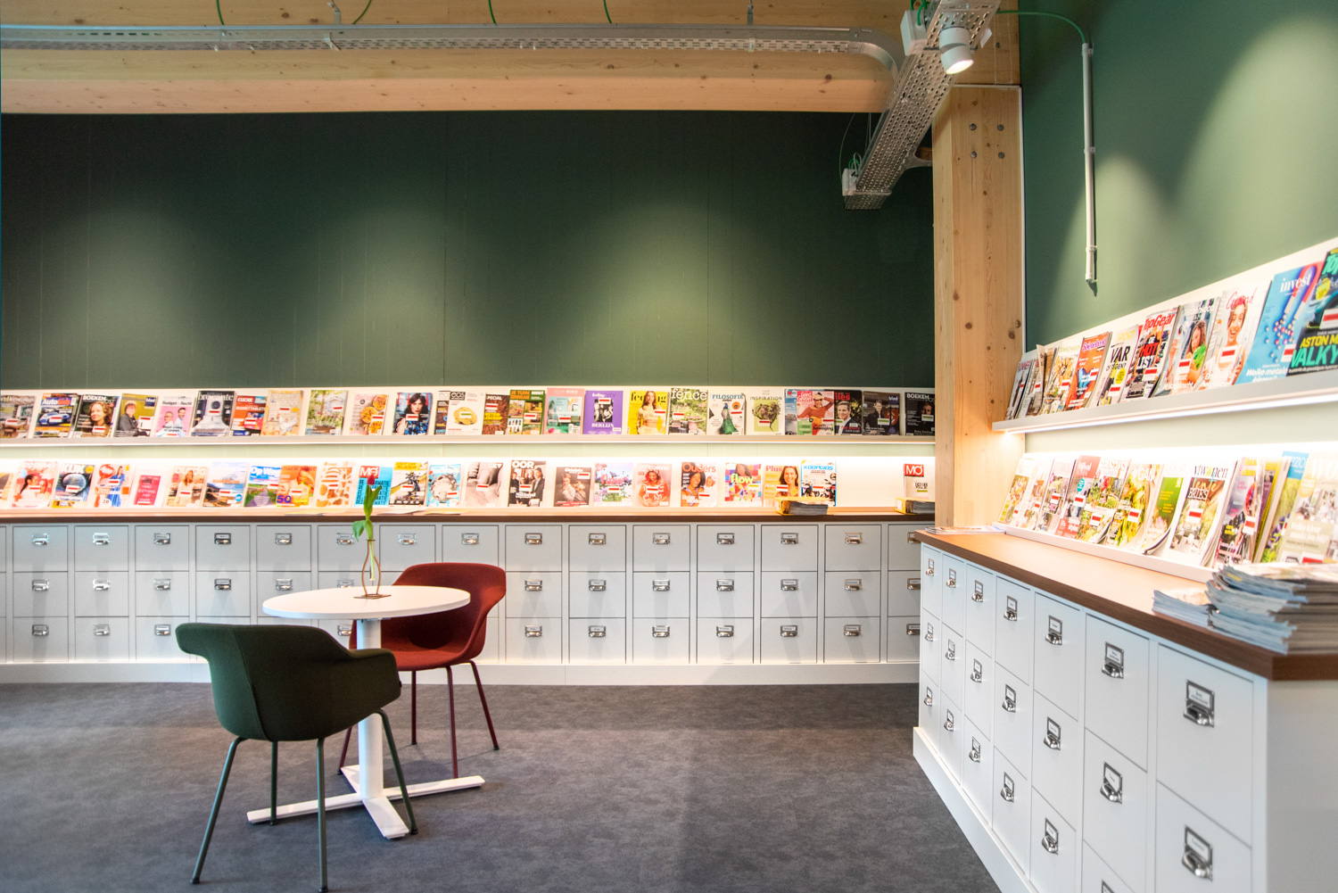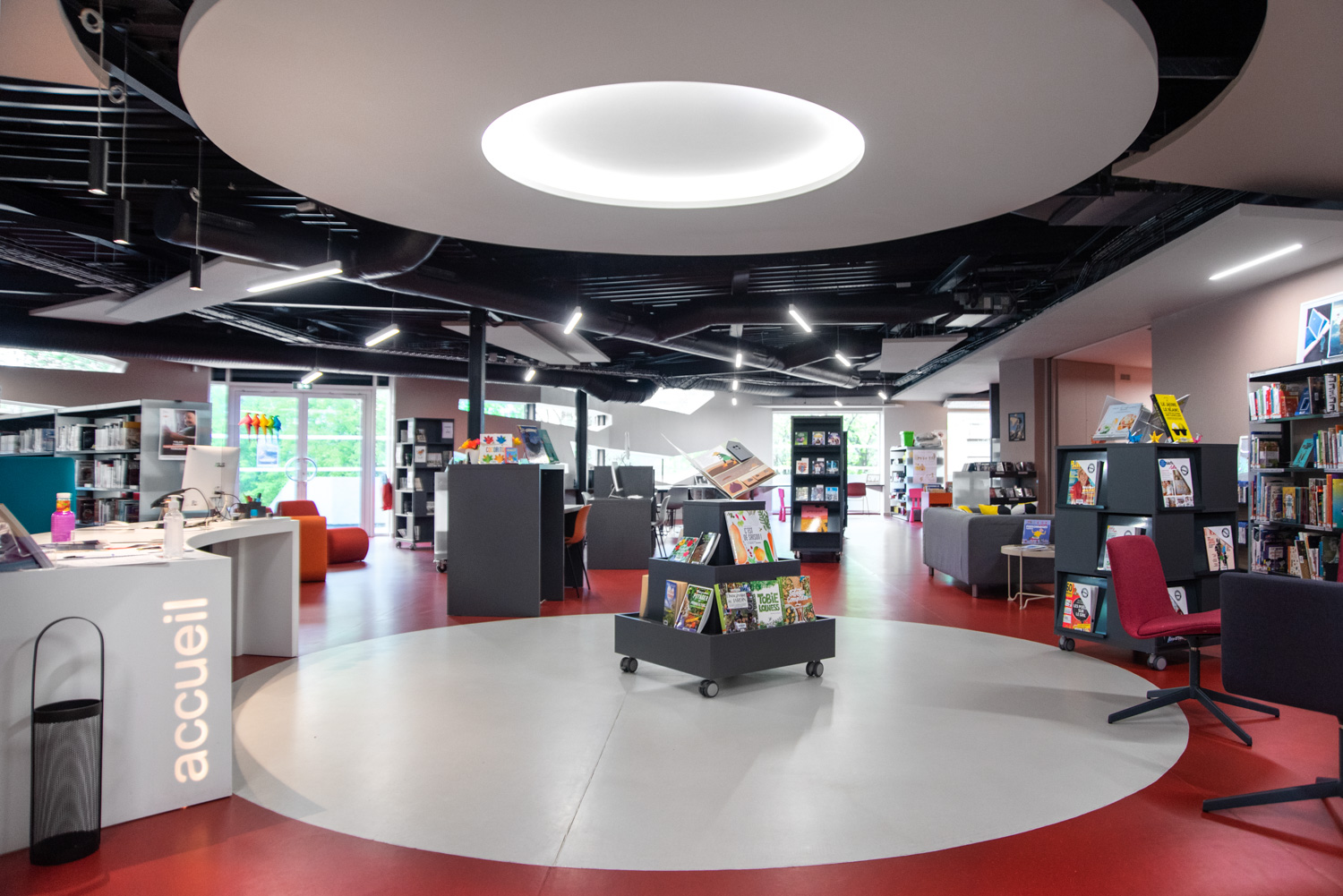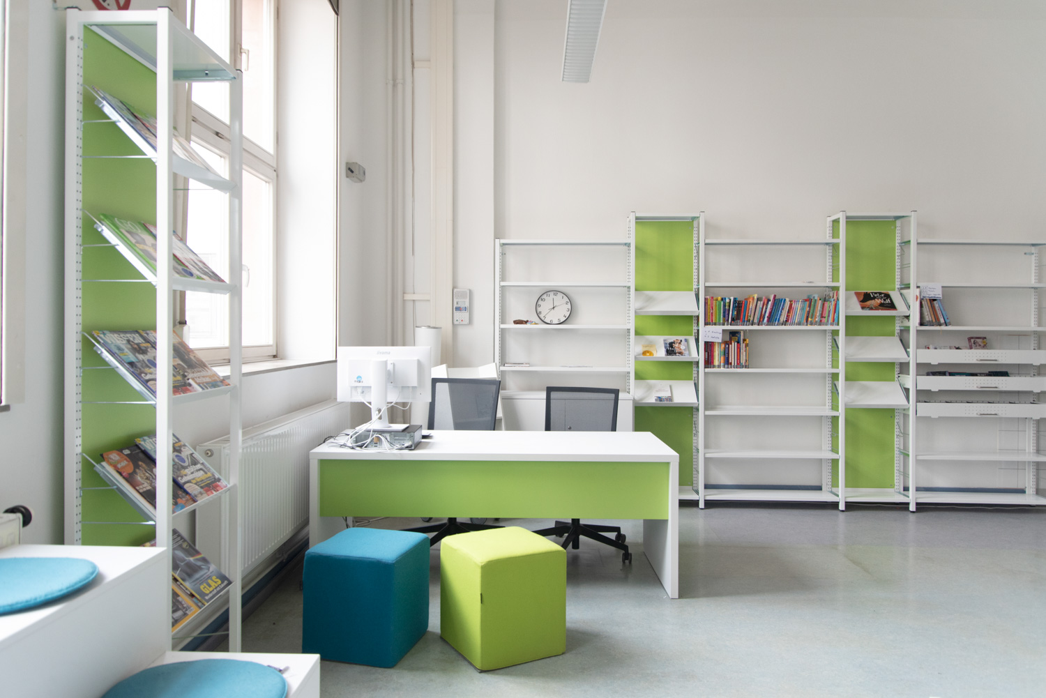 Borden kan användas för att skapa spännande och funktionella arbetsmiljöer i biblioteket, för både sittande och stående.