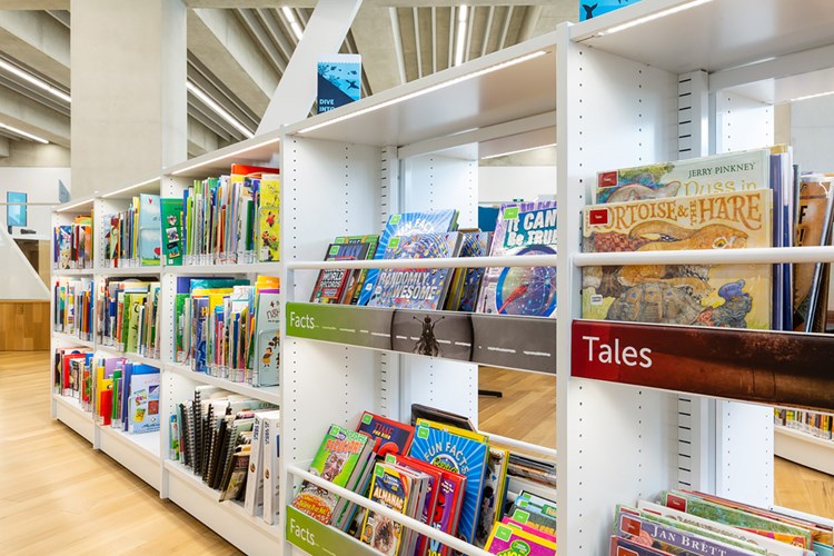 På Avedøre bibliotek har man försett den befintliga hyllinredningen med hyllbelysning, vilket gjort en väldig