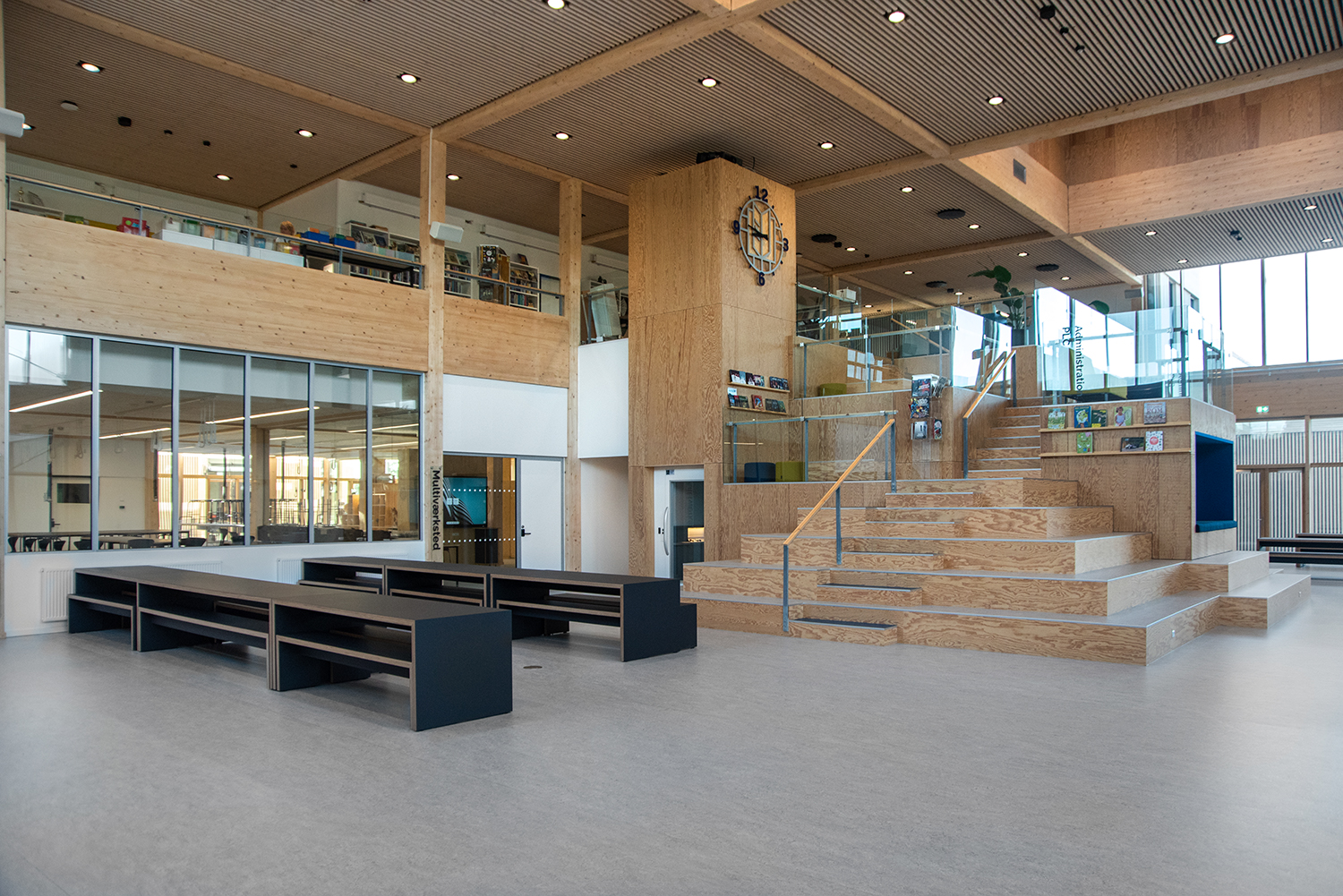 Rum i rummet kan skapas med hjälp av olika möbler, t.ex. runda bokhyllor och specialinredda sittgrottor som Luna ljudmöbel, HabiCave, Sensa fåtölj och Cocoon sitthål.