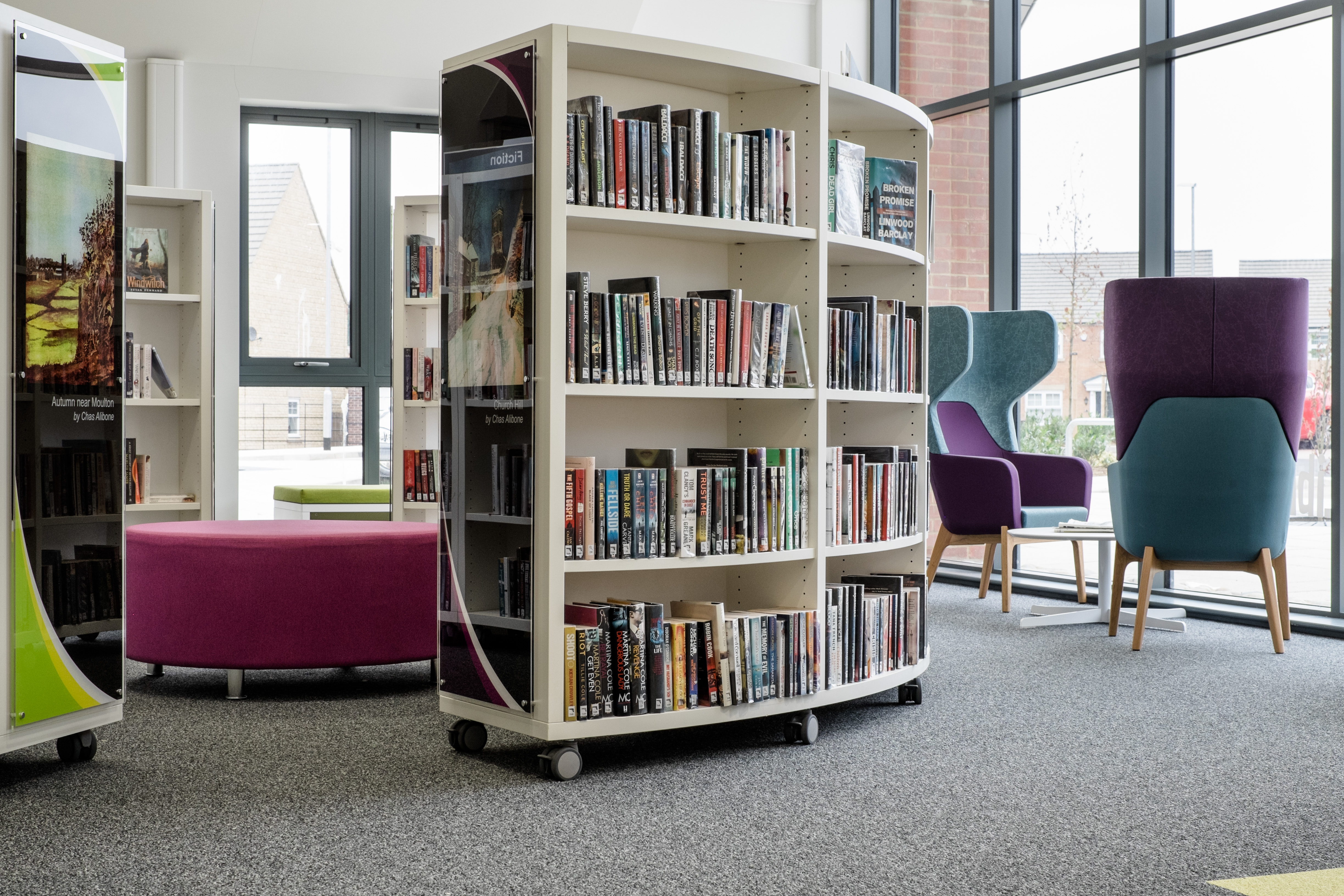 Moulton behövde ett bibliotek som var öppet, färgglatt och spännande, som kunde omfamna alla besökare – från femåriga barn till äldre demenssjuka.