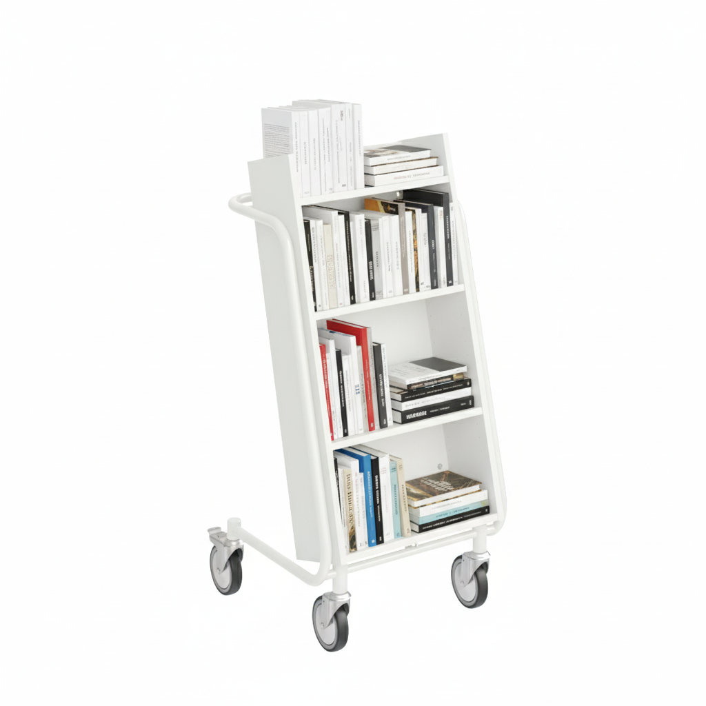 Bokvagnens lutning säkerställer effektiv förvaring och ger god översikt över de böcker du vill hantera.