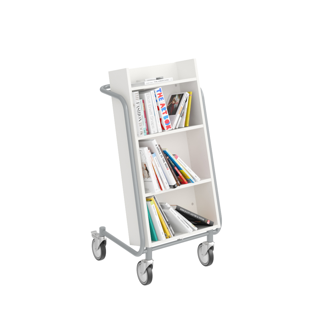 Bokvagnens lutning säkerställer effektiv förvaring och ger god översikt över de böcker du vill hantera.