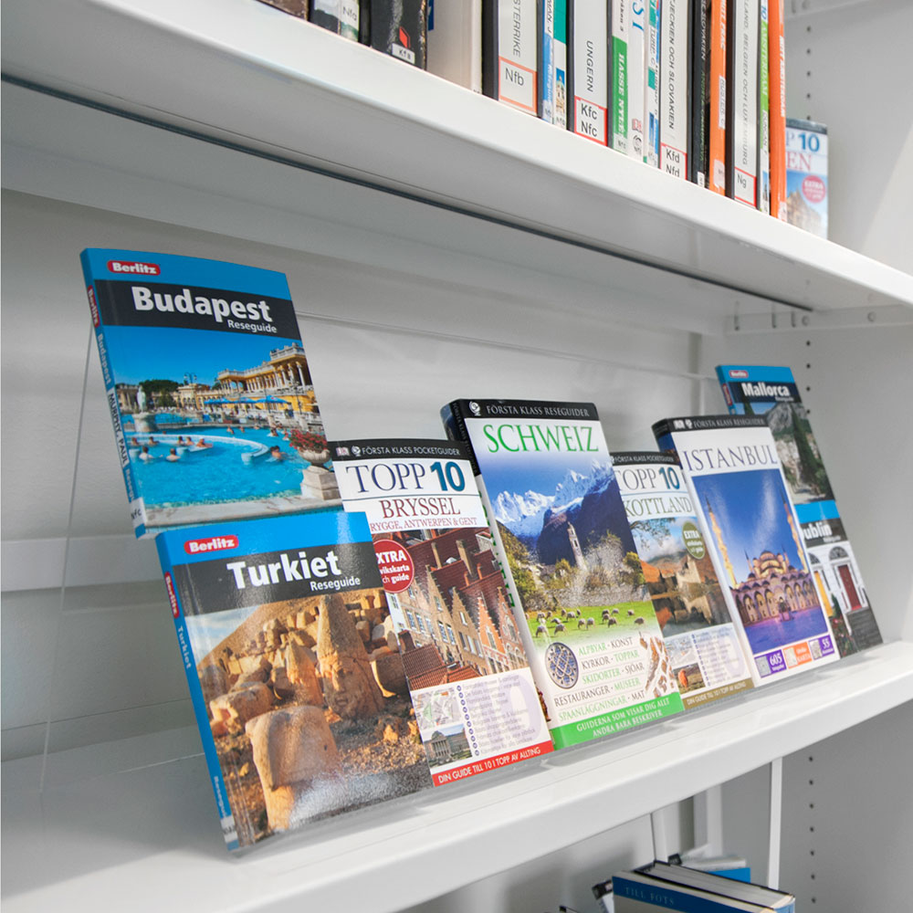 Stapelbar, dubbelsidigt ställ i våningar för exponering på 2 plan med god kapacitet.