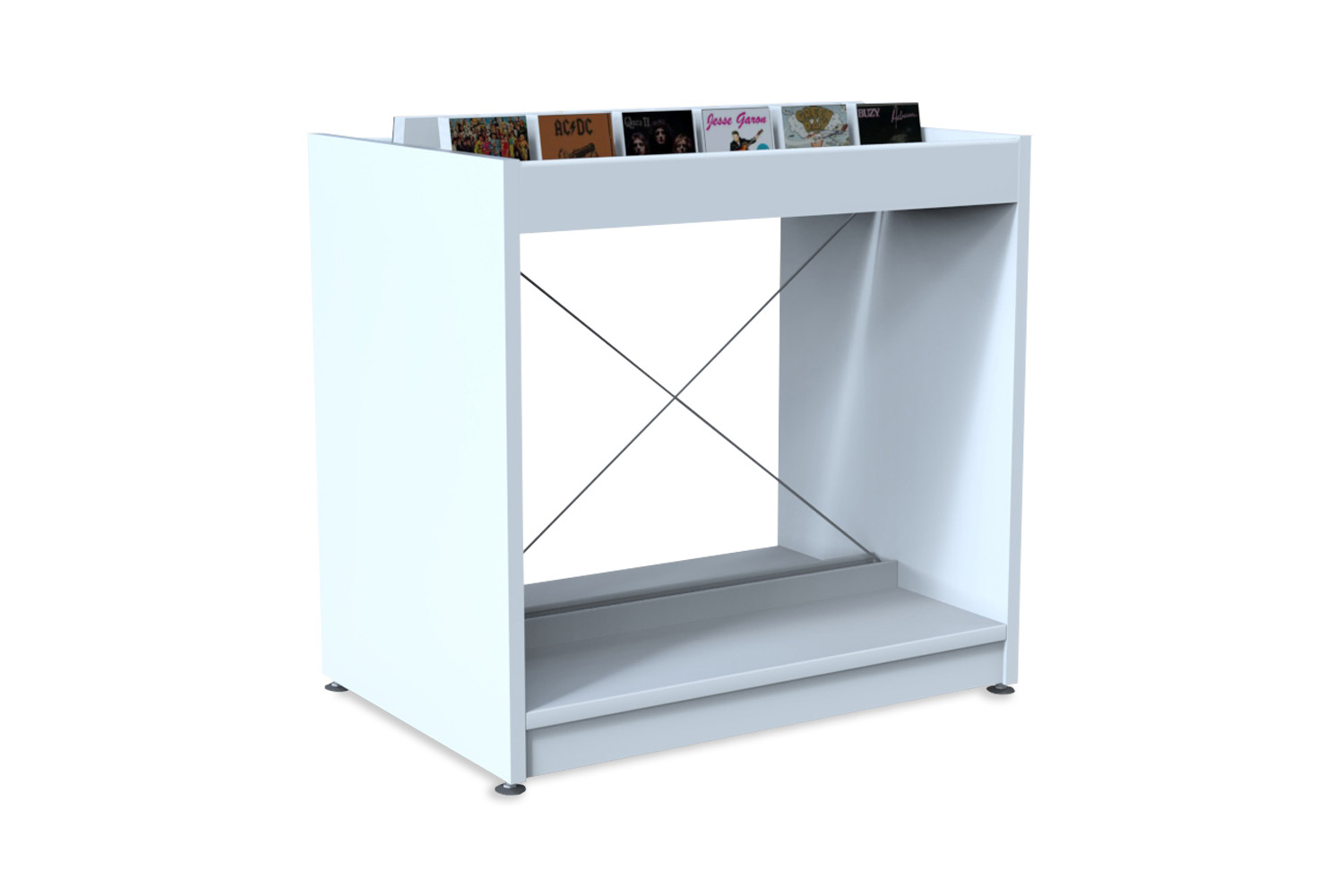 Lådorna har räfflad gummimatta, som hjälper till att hålla böckerna uppe så de inte glider ned. Det ingår avdelare till exponeringslådorna.