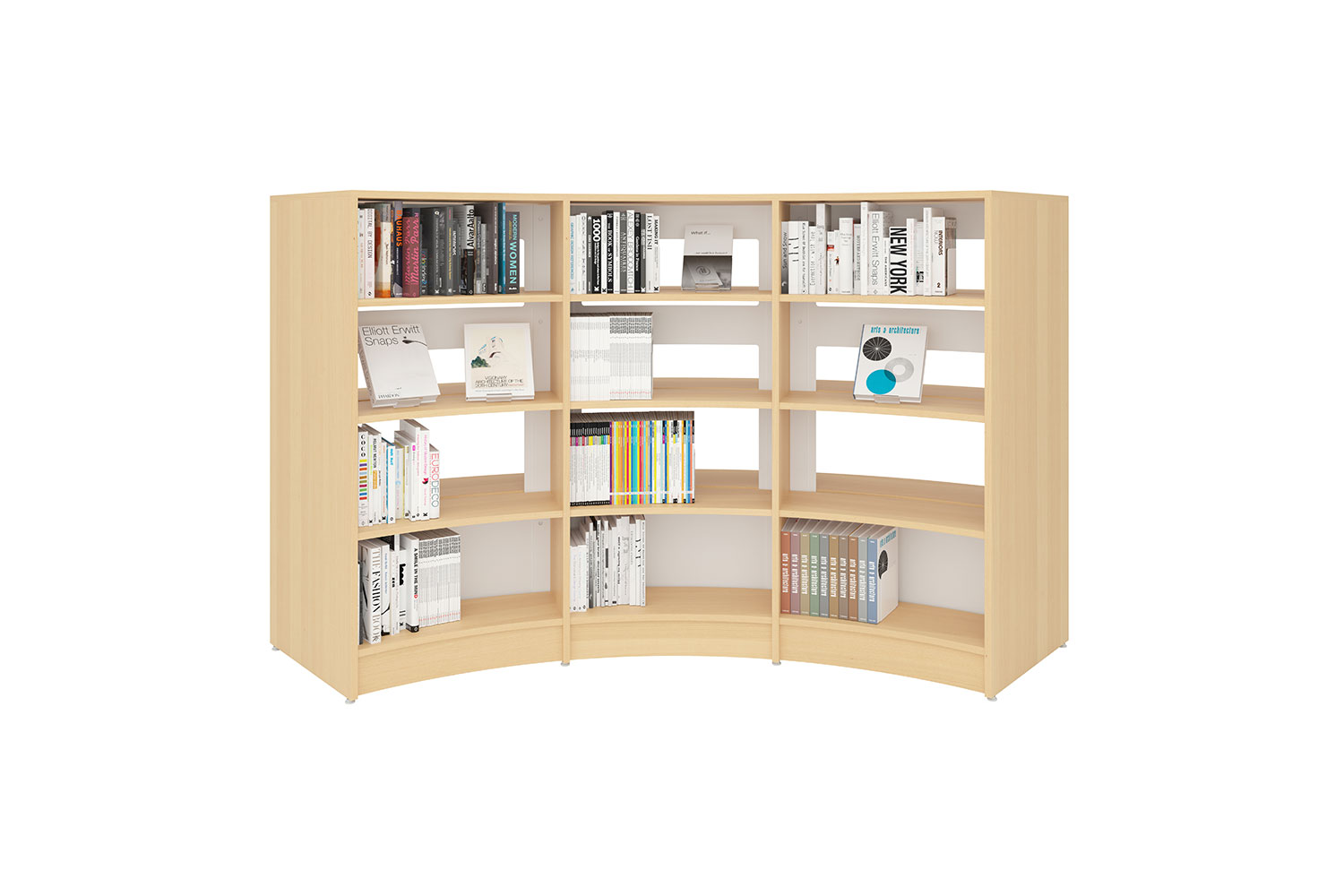 Lingo rund hylla öppnar upp en ny värld av exponering och förvaring av böcker. Skapa små läs- eller specialzoner genom att bygga en nästan fullbordad cirkel, där bibliotekets besökare kan få viss avskildhet, eller skapa öppna vågmönster av runda hyllor genom biblioteket.
