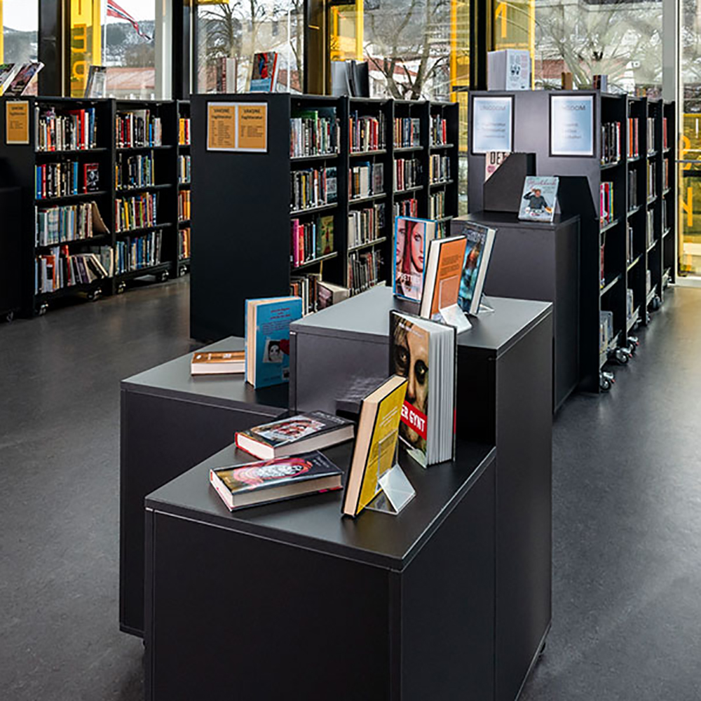 All-round exponering av böcker, broschyrer och AV-media CD och DVD-skivor.