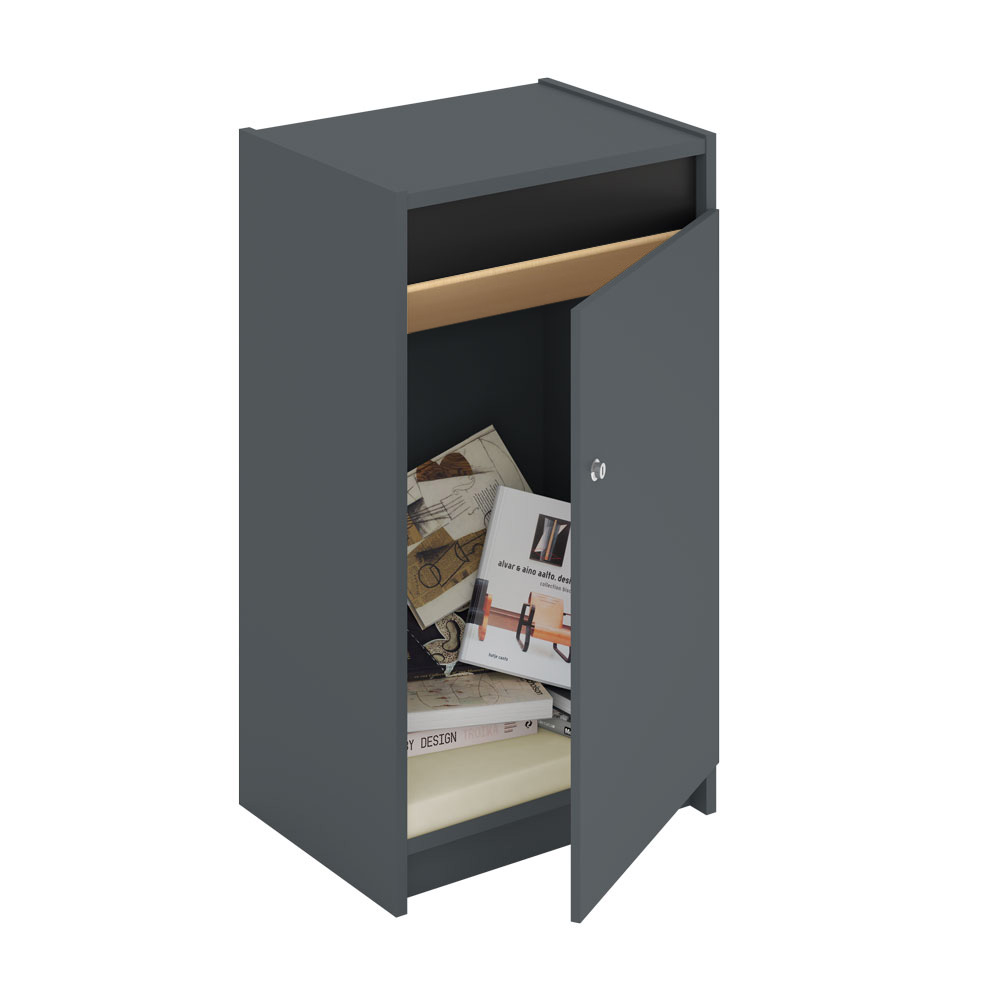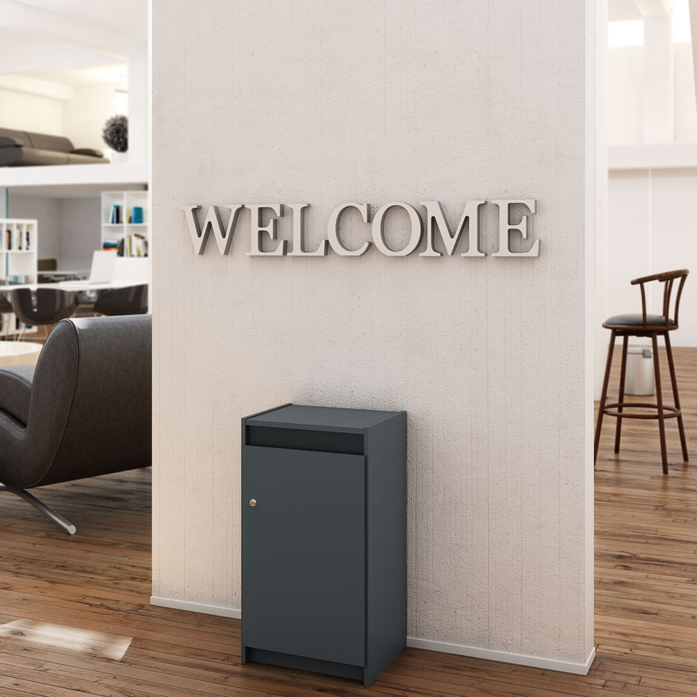 Funktionellt och låsbart fack. Låsbart återlämningsfack med en 40 mm. tjock invändig bottenskiva av självslocknande material (kallskum).