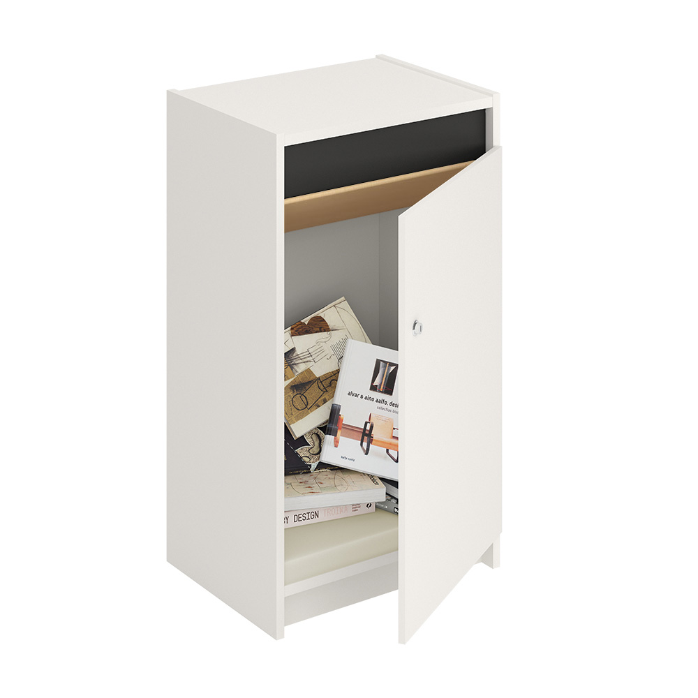 Funktionellt och låsbart fack. Låsbart återlämningsfack med en 40 mm. tjock invändig bottenskiva av självslocknande material (kallskum).