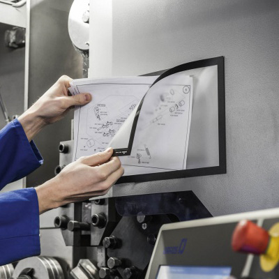 Tack vare den magnetiska öppningen kan du snabbt och enkelt byta information. Ramarna kan användas både stående och liggande material.