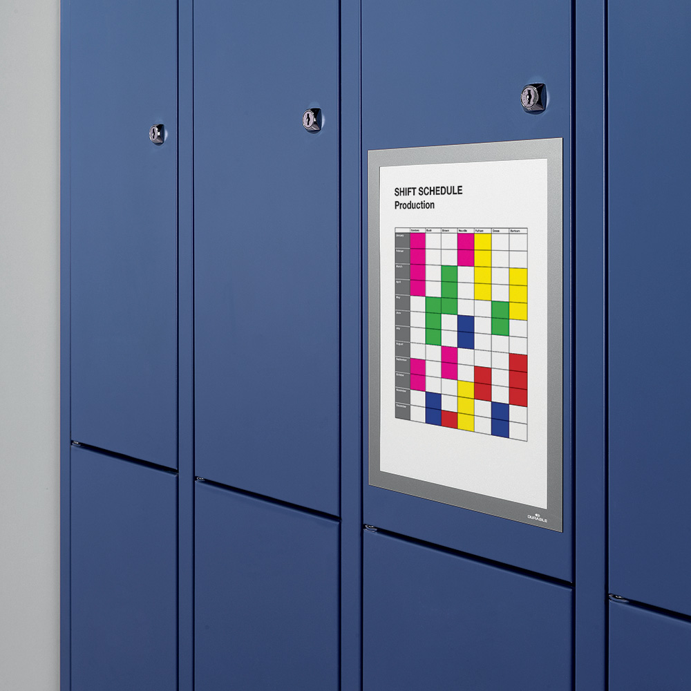 Magnetramarna (Duraframe® Magnetic Plus) fäster på magnetiska underlag såsom hyllgavlar av metall, whiteboardtavlor etc.