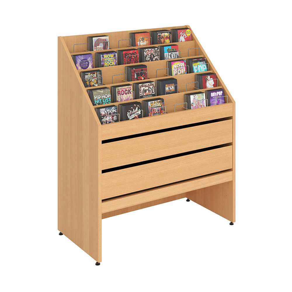 5 våningar med vardera 6 rymliga fackvilket till CD och DVD skivor.
