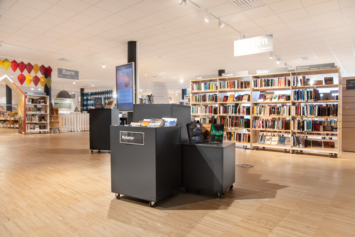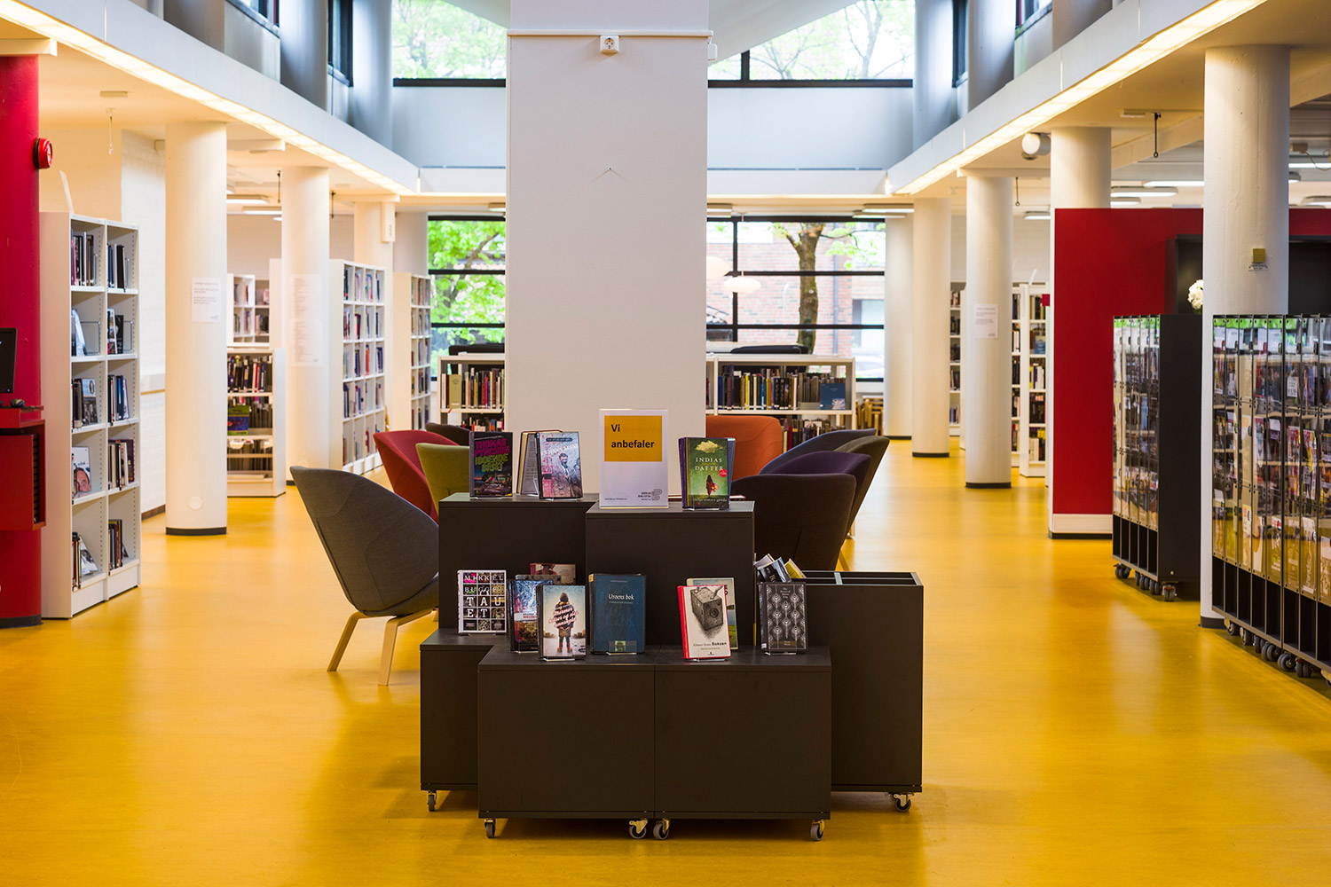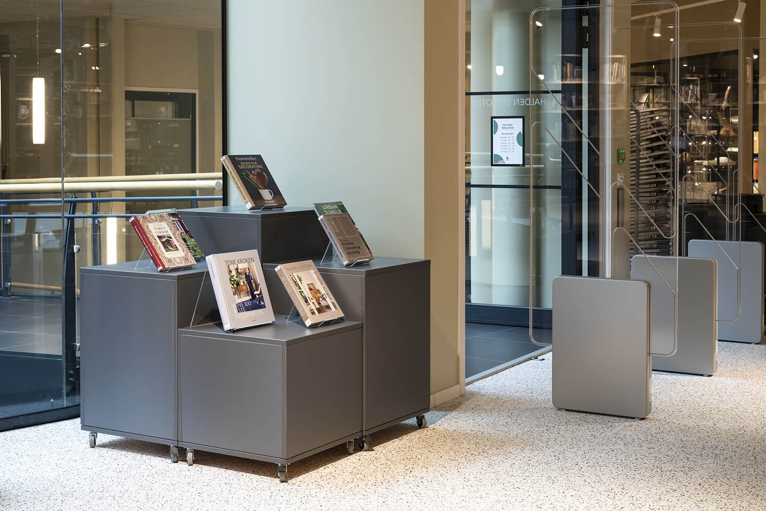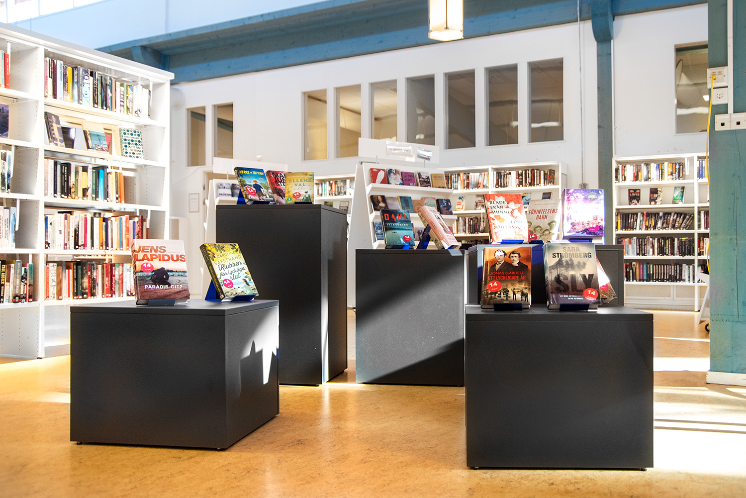 Perfekta för att skapa små och stora öar i biblioteket. Den enkla formen passar bra på de flesta platser och gör att böcker verkligen syns.
