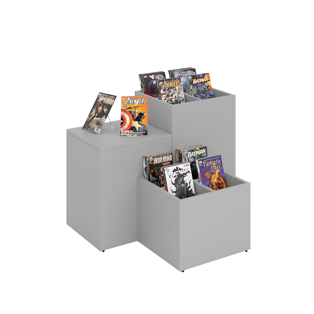 Perfekta för att skapa små och stora öar i biblioteket. Den enkla formen passar bra på de flesta platser och gör att böcker verkligen syns.