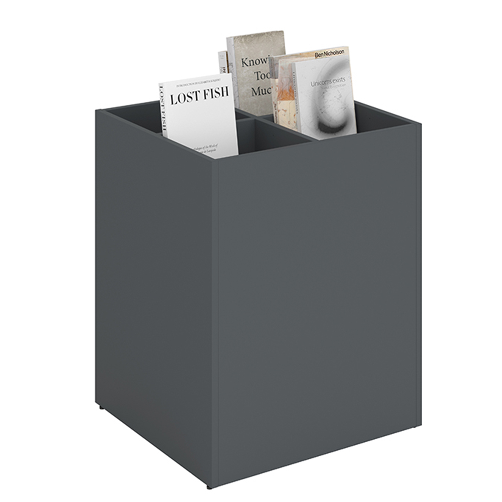 Perfekta för att skapa små och stora öar i biblioteket. Den enkla formen passar bra på de flesta platser och gör att böcker verkligen syns.