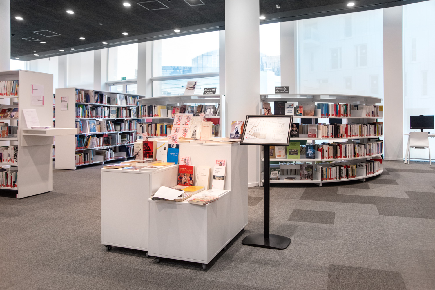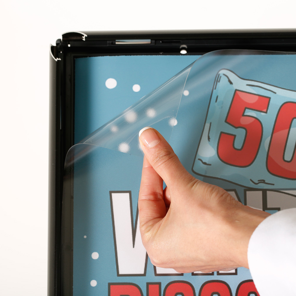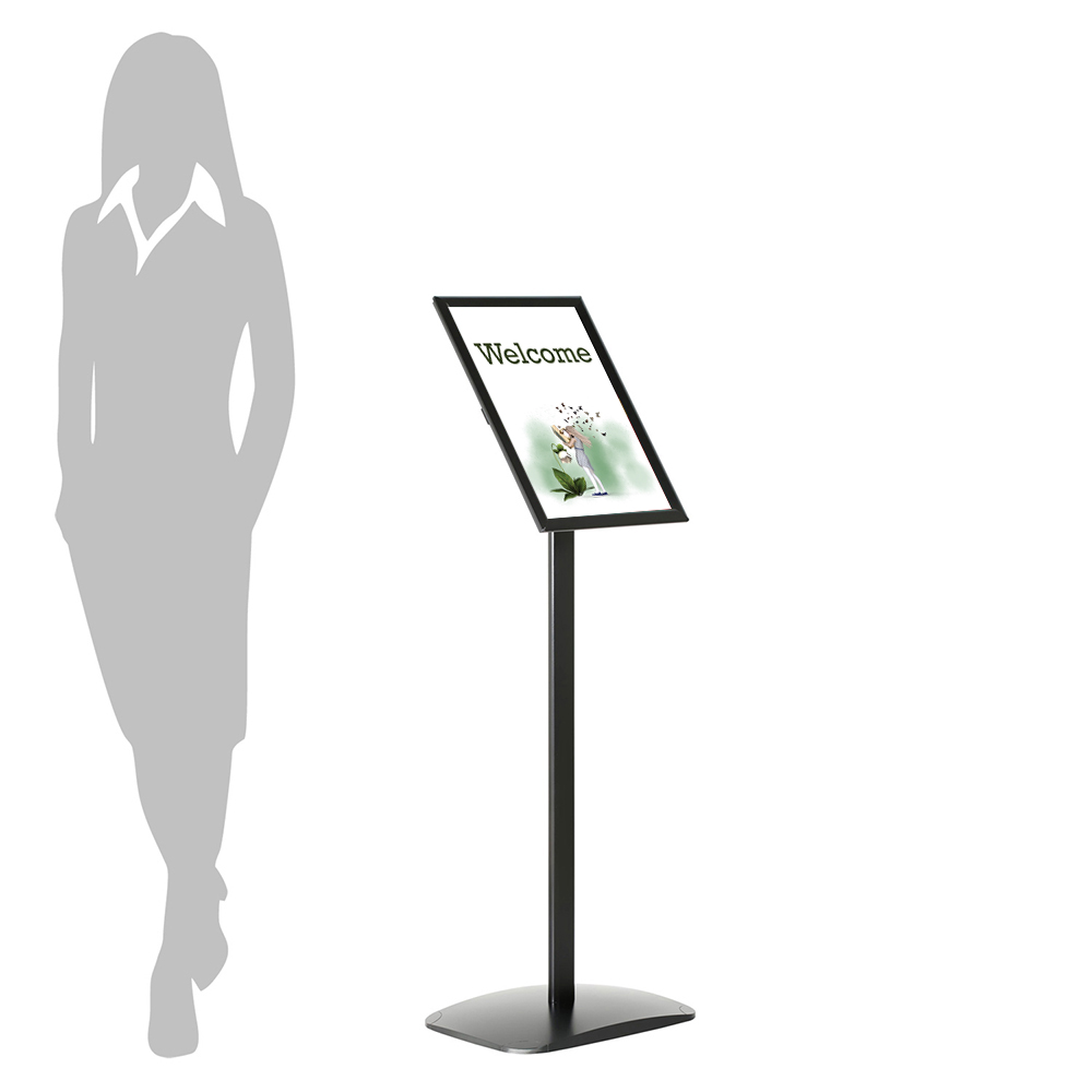 Klickram med 25 mm profil. Stabilt ställ med anti-reflexbehandlad infohållare i plast. Stället är användbart överallt i bibliotekets lokaler samt i entré/reception.